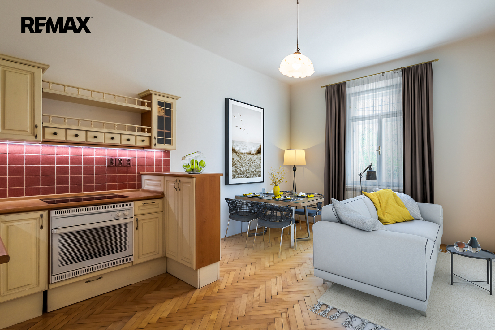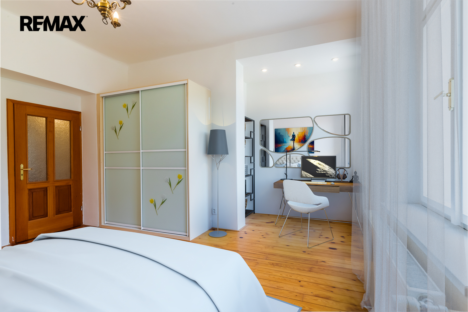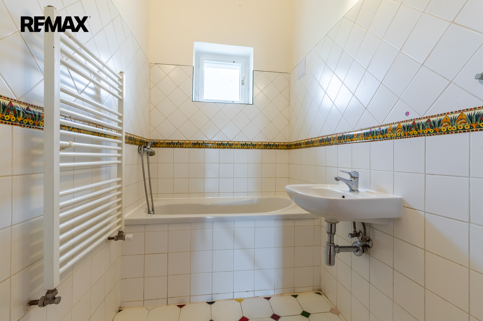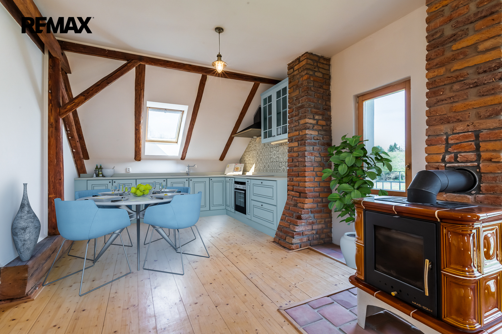 • Podlahy: dřevo a dlažba, okna: dřevěná špaletová