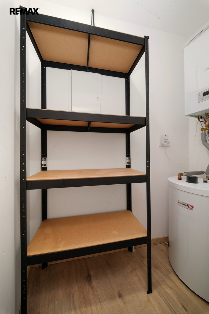 Velmi praktickým bonusem je technická místnost, která nabízí další úložné prostory.