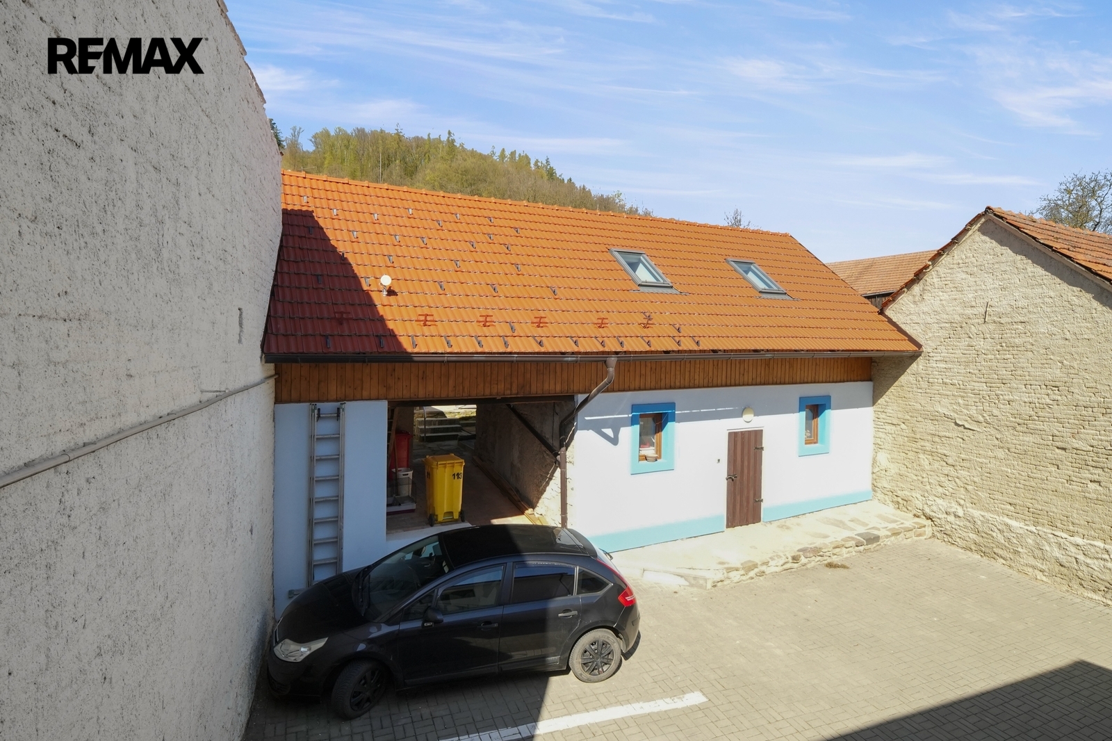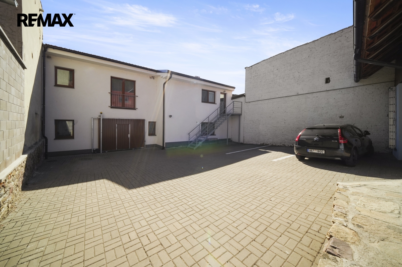 Již při příjezdu Vás zaujme praktický průjezd na uzavřený dvůr, kde se nachází vlastní parkovací stání náležící k bytu.