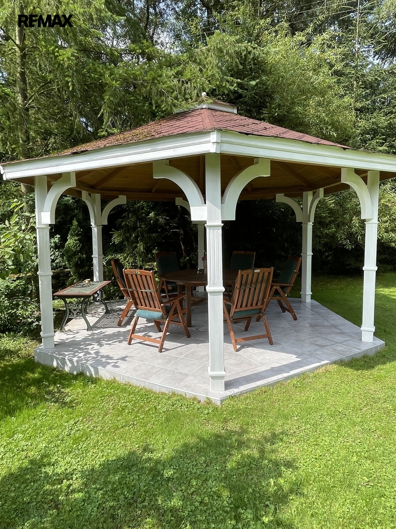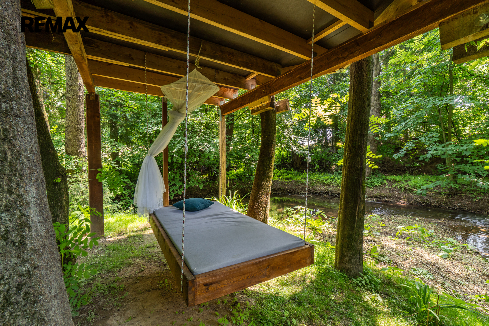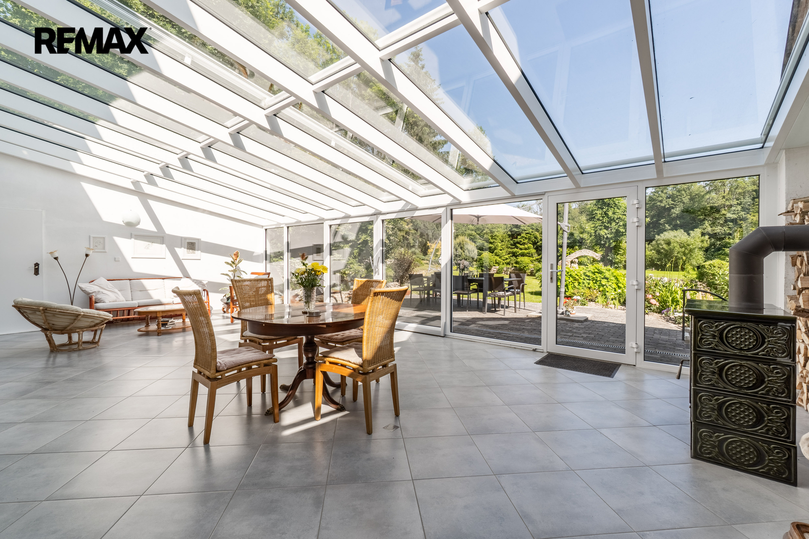 Dům je napojen na moderní fotovoltaický systém s bateriemi a vytápěn tepelným čerpadlem vzduch–voda, což z něj činí energeticky soběstačný a ekologický objekt. Zimní zahrada se stínicí technikou reagující na počasí poskytuje klidné útočiště během celého roku. Venku vás okouzlí bazén se sladkou vodou a tepelným čerpadlem, sprchou a toaletou, vše navržené s důrazem na pohodlí. Zahrada je nejen pečlivě upravená, ale i jedinečně koncipovaná – její chloubou je majestátní kalifornská sekvoj, vzrostlý unikátní strom zasazený před 15 lety, který vytváří impozantní dominantu rozlehlé zahrady. Nechybí ani klidová zóna s dřevěným domečkem na stromě (tree house) a meditačním „templem“ vytvořeným unikátním materiálem - z desek starých klavírů.