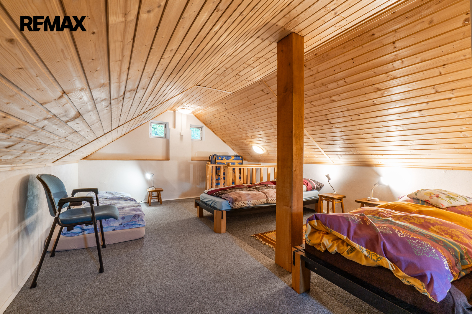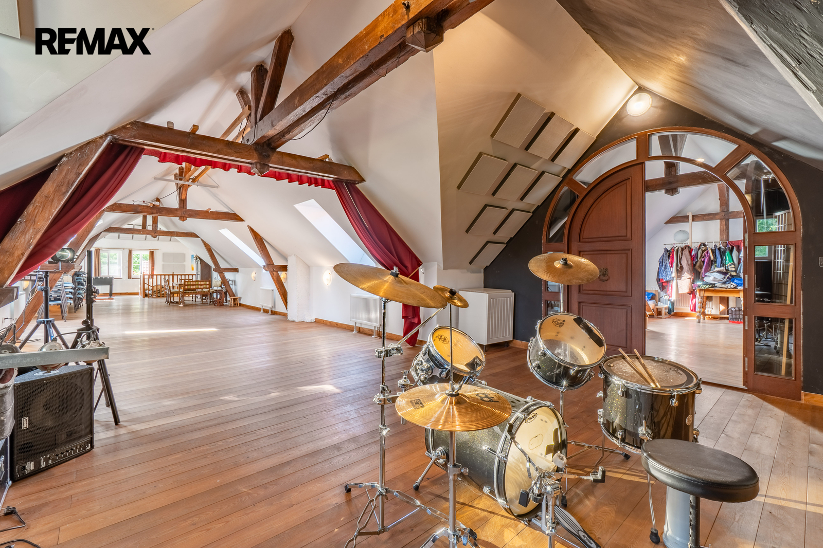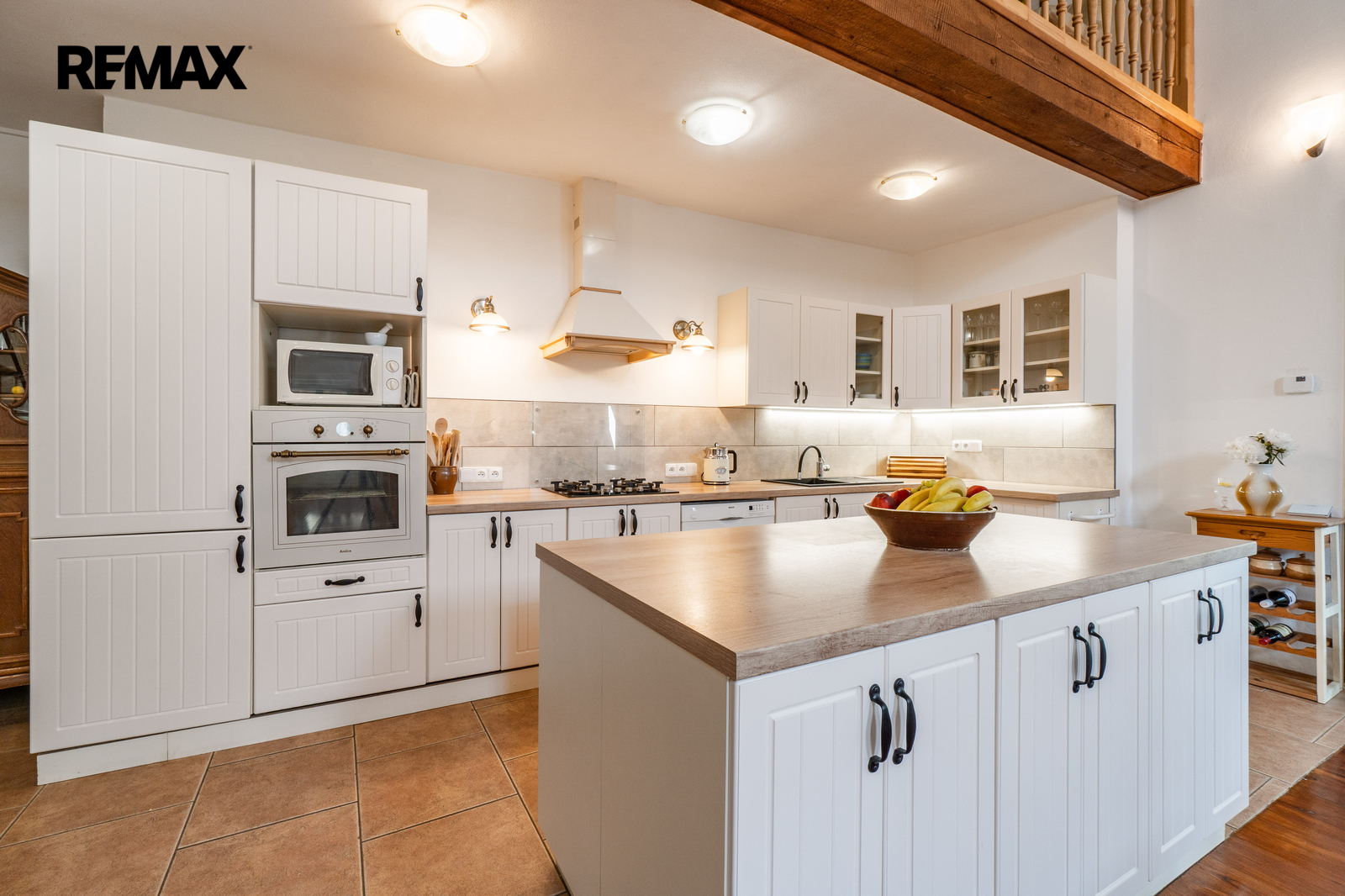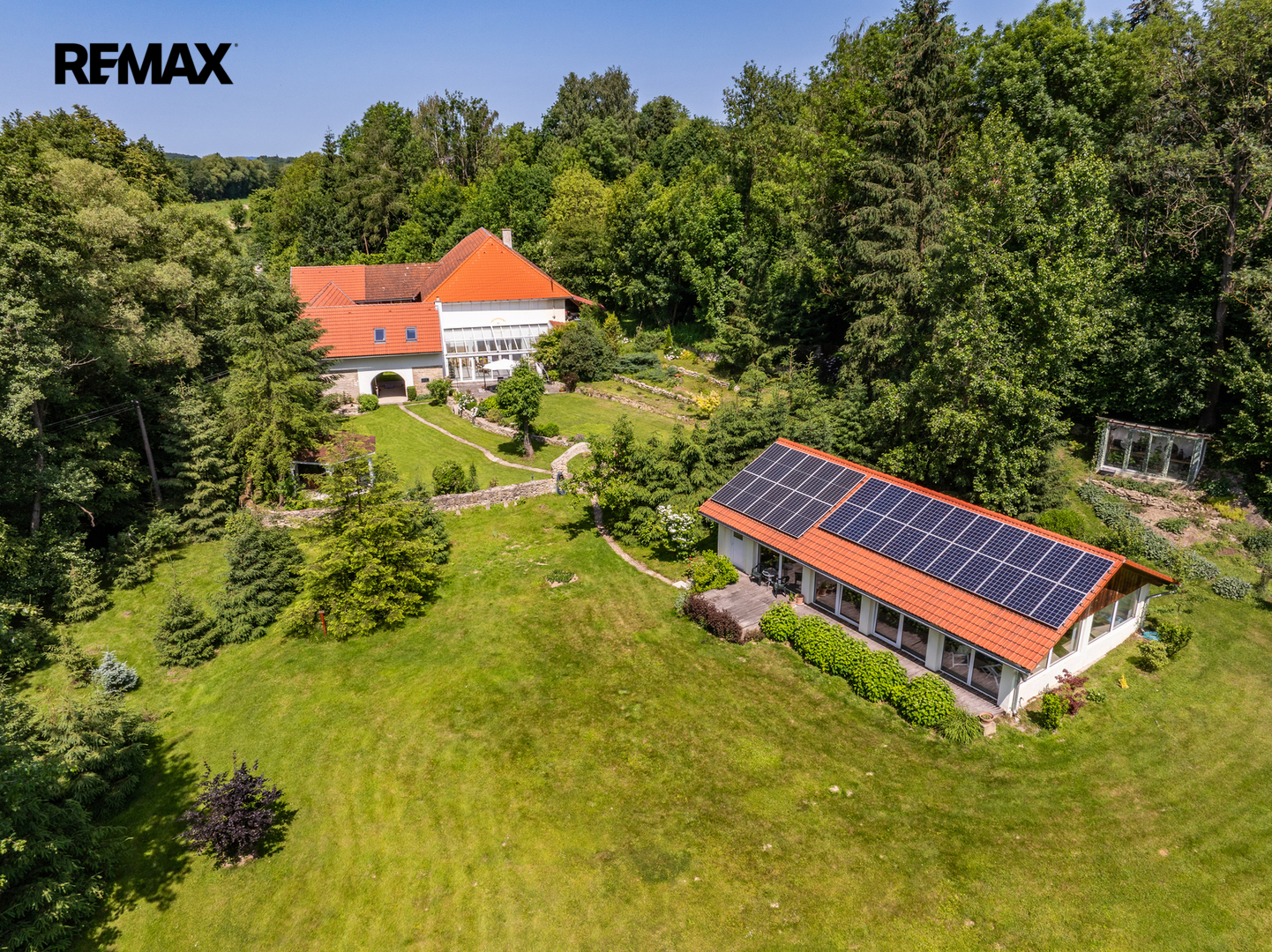 Celková užitná plocha činí 786,1 m² a nabízí mimo jiné i sál vhodný pro pořádání větších akcí. Nechybí dvě garáže s dostatkem místa pro techniku i vozidla. Ať už hledáte nové rodinné zázemí nebo výjimečné místo pro podnikání v souladu s přírodou, tato nemovitost vám dá prostor pro obojí. Dům má kamenné základy a využíván je také sklepní prostor přístupný z prostorné obývací haly, vedle kuchyňského koutu.
