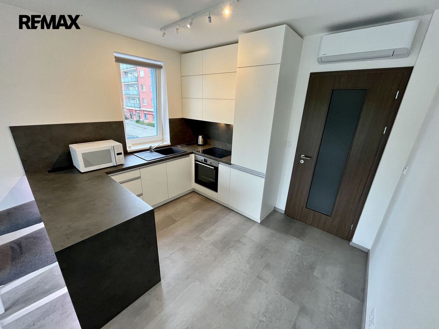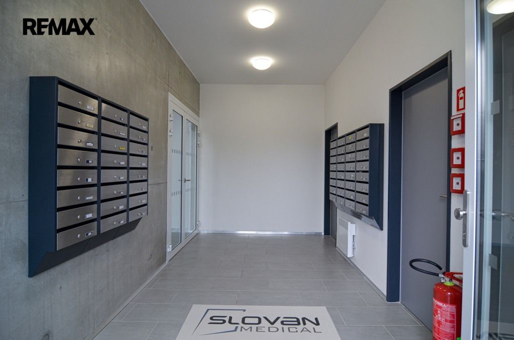 Pronájem nového moderního bytu 2+kk se šatnou o celkové ploše 60,4 m² v projektu Slovan v Břeclavi, ul. U Nemocnice. Jednotka je umístěna ve druhém nadzemním podlaží z osmi v nově postaveném cihlovém domě s výtahem a je orientována na jihozápadní stranu. Byt má elektrické podlahové vytápění, klimatizaci a je vybaven novou moderní kuchyňskou linkou se spotřebiči (vestavná lednička, myčka, varná deska, elektrická trouba, mikrovlnná trouba, digestoř a osvětlení). Dále v bytě zůstává v obývacím pokoji TV stolek (bez televizoru), konferenční stolek, sedací souprava a 2x barová židle, v ložnici manželská postel a v koupelně pračka. V šatně je praktický závěsný systém. Francouzská okna jsou pro Vaše pohodlí opatřena elektricky ovládanými žaluziemi. K bytu náleží prostorný balkon (8,6 m2) a jako bonus vlastní parkovací místo. Společná kolárna a kočárkárna v domě.