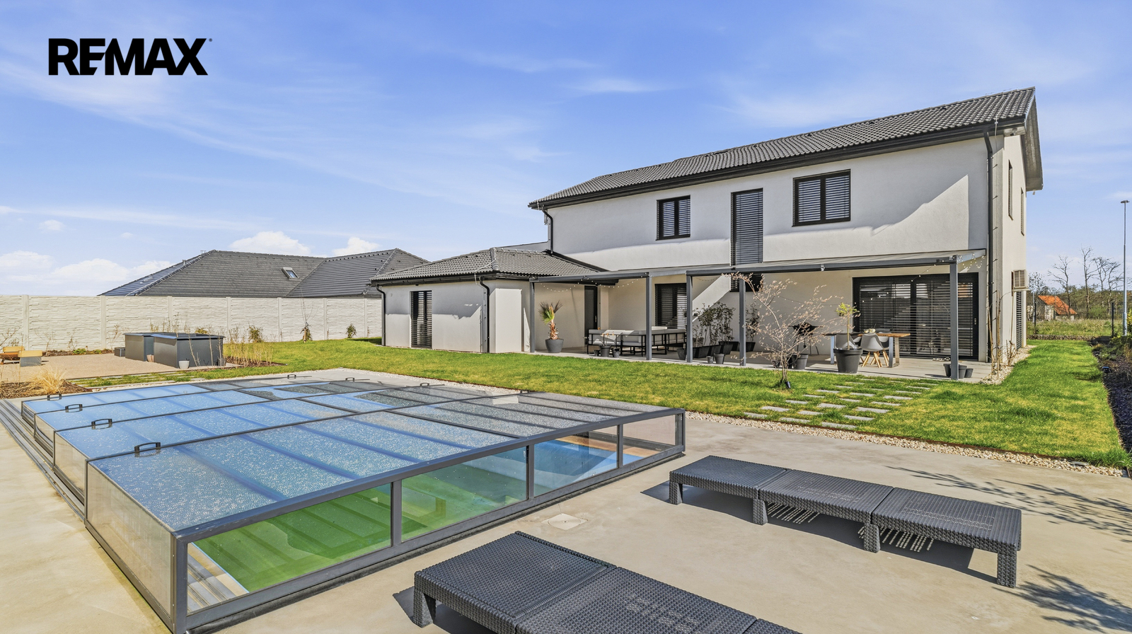 Dům je vybaven moderními technologiemi, jako je tepelné čerpadlo, podlahové vytápění v celém domě, chytrá domácnost pro ovládání venkovních žaluzií, garáže a vjezdových vrat přes telefon, kamerový systém a zabezpečovací systém Jablotron. Samozřejmostí jsou velkoformátová okna, vestavné skříně a kvalitní materiály včetně sanity Villeroy & Boch. Energetická náročnost budovy spadá do velmi úsporné třídy B. Dům je připraven k okamžitému nastěhování.