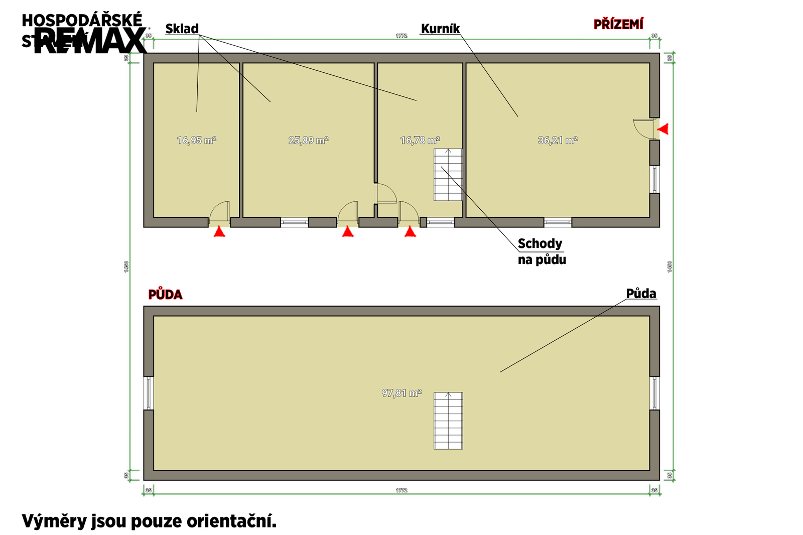 Dům je řešen jako patrový se třemi nadzemními podlažími. Dispozičně je rozdělen do dvou bytů s dispozicí 6+1 a 2+kk, což zajišťuje dostatek prostoru a soukromí i pro vícečlennou rodinu nebo vícegenerační bydlení. Součástí domu je také garáž, sklep o 50 m2, hospodářské stavení, sklad a půda s možností přestavby na obytný prostor.