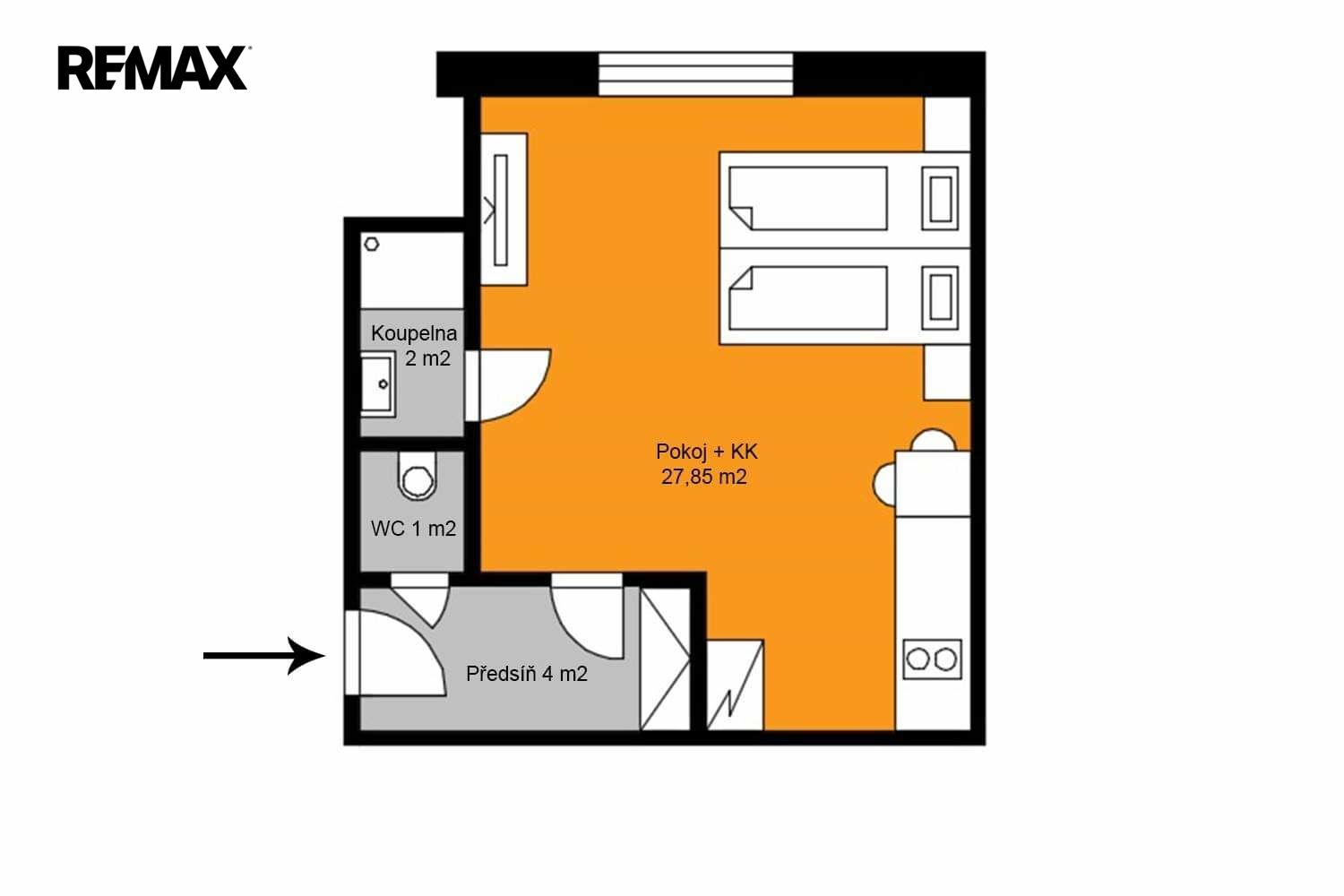 Byt je k nastěhování od 1.6. a je vhodný pro jednotlivce.