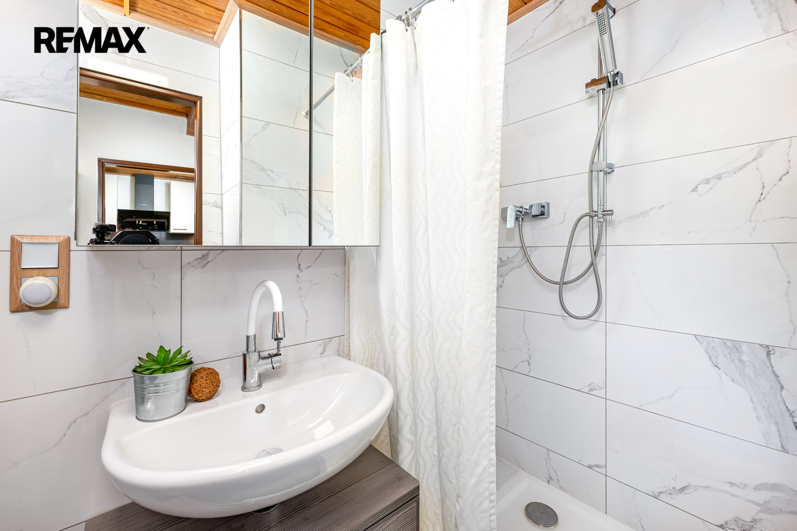 Obytná část: v prvním podlaží se nachází předsíň, hlavní obytná místnost s jídelním koutem, koupelna se sprchovým koutem a WC a samostatná kuchyně. Schodištěm je přístup do podkroví se dvěma ložnicemi. Prodává se vybavený kuchyňskou linkou se spotřebiči (trouba, plynová varná deska, digestoř, myčka nádobí). Podlahové krytiny jsou kombinací dlažby a PVC. Orientační dispozici obytné části s rozměry jednotlivých místností najdete na přiloženém půdorysu.