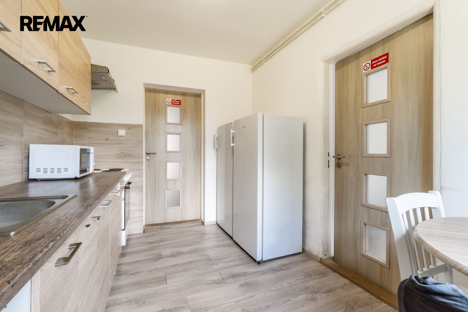 Dispozice je navržena pro plynulý provoz: v přízemí čtyři pokoje, plně vybavená kuchyň a kompletní sociální blok; v patře sedm pokojů, druhá kuchyň a další sociální zázemí se čtyřmi sprchami a čtyřmi WC.