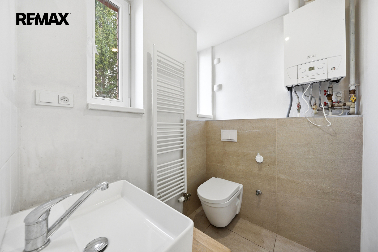 Dům je napojen na veškeré inženýrské sítě – elektřinu, plyn, vodovod i kanalizaci. Každá bytová jednotka má vlastní plynový kotel, samostatné měření plynu a oddělené podružné měření elektřiny i vody, což je ideální pro vícegenerační bydlení i pronájem.