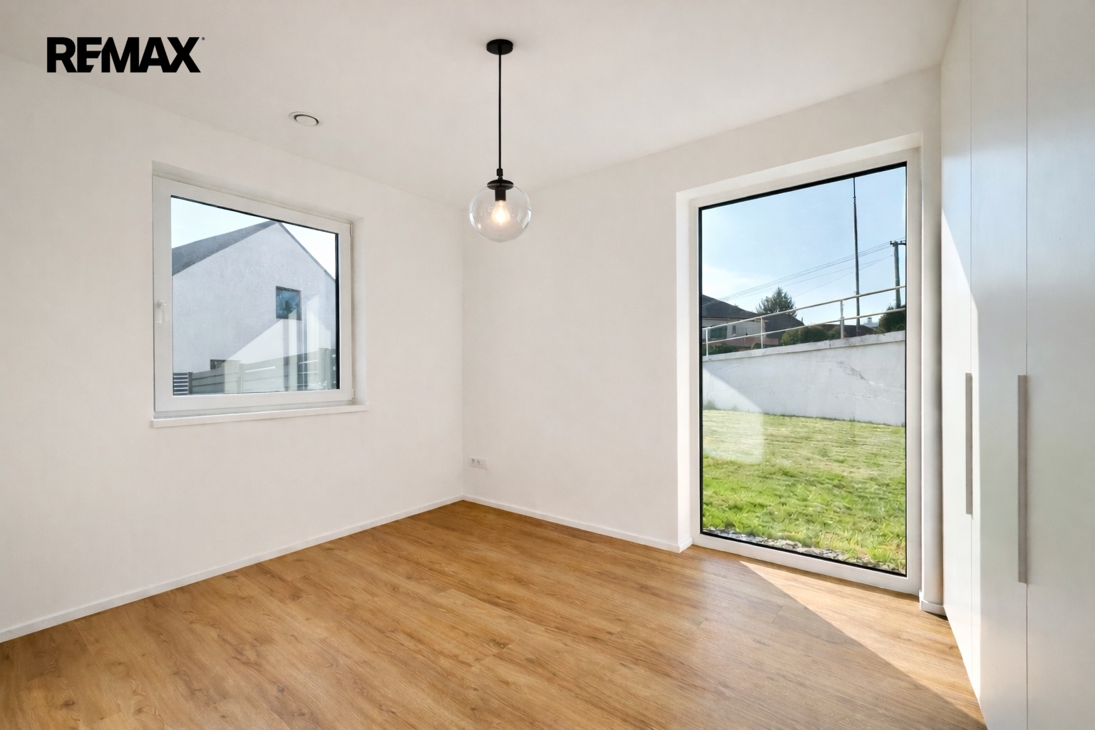 Dvoupatrový rodinný dům nabízí komfort se vším, co od moderního bydlení očekáváte. Dispozice 5+kk zahrnuje čtyři samostatné pokoje, prostorný obývací pokoj s plně vybaveným kuchyňským koutem (indukční varná deska, horkovzdušná pečící trouba, mikrovlnná trouba, lednice s mrazákem, myčka nádobí, digestoř). K dispozici jsou dvě koupelny - jedna s vanou, toaletou a umyvadlem, druhá se sprchovým koutem, toaletou a umyvadlem. Ložnice a předsíň jsou vybaveny vestavěnými skříněmi a pračka se sušičkou najdou své místo v samostatné technické místnosti.
