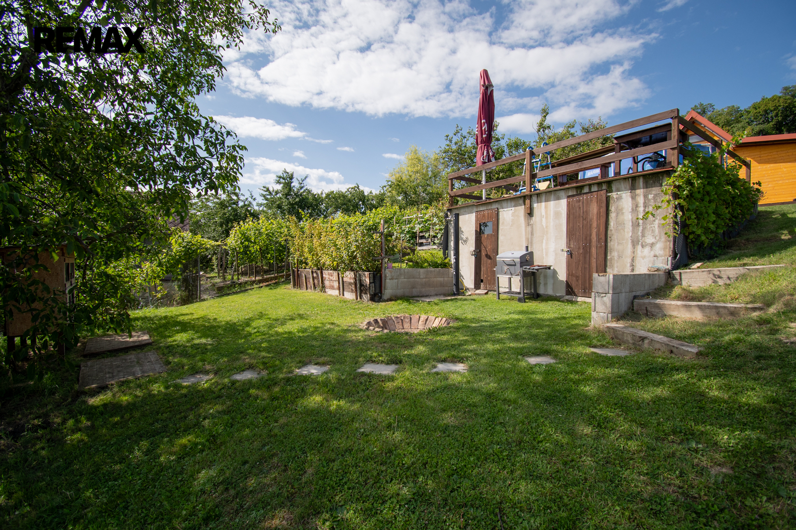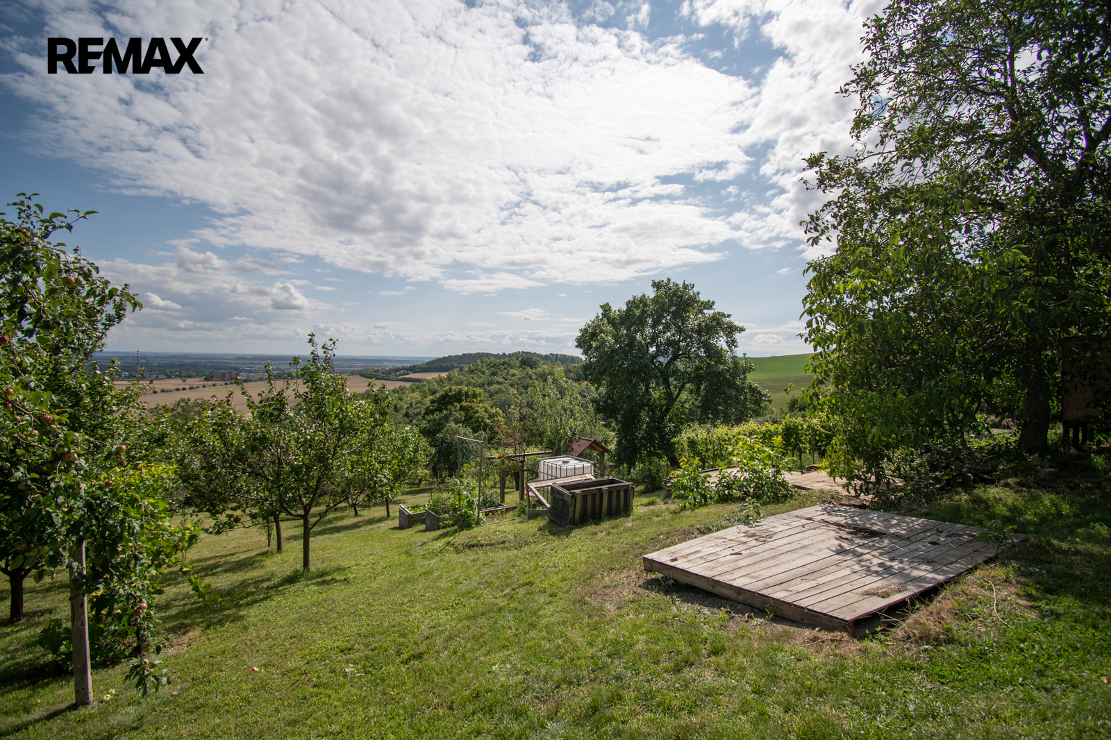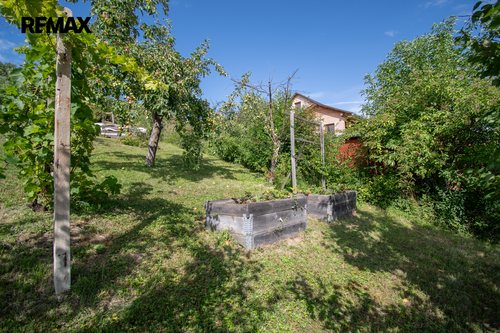 Jednou z výrazných předností této nemovitosti je kromě nádherného výhledu do okolní krajiny i udržovaný stav zahrady. Nemovitost poskytuje klidné a příjemné prostředí pro každodenní o celoroční relaxaci. Pozemek je také velmi dobře dostupný po silnici, což usnadňuje cestování a přístup k městské infrastruktuře. Na pozemku najdeme ovocné stromy: meruňka, třešeň, višeň, jabloně, švestka, rybíz, angrešt.