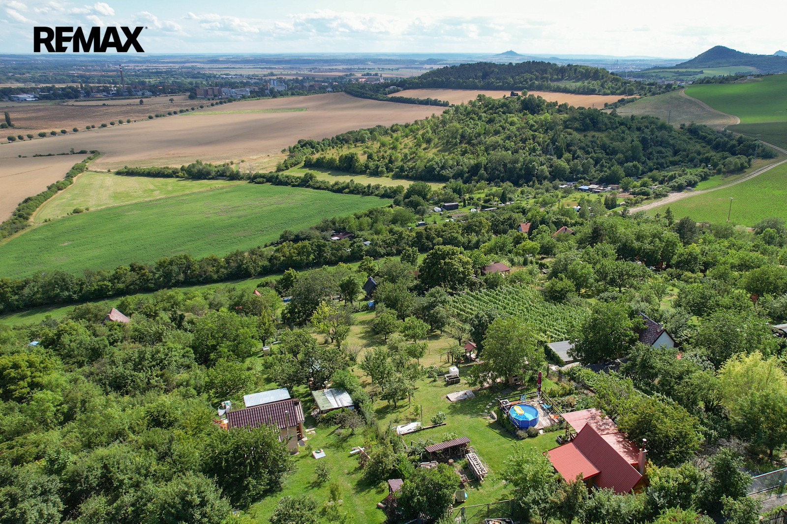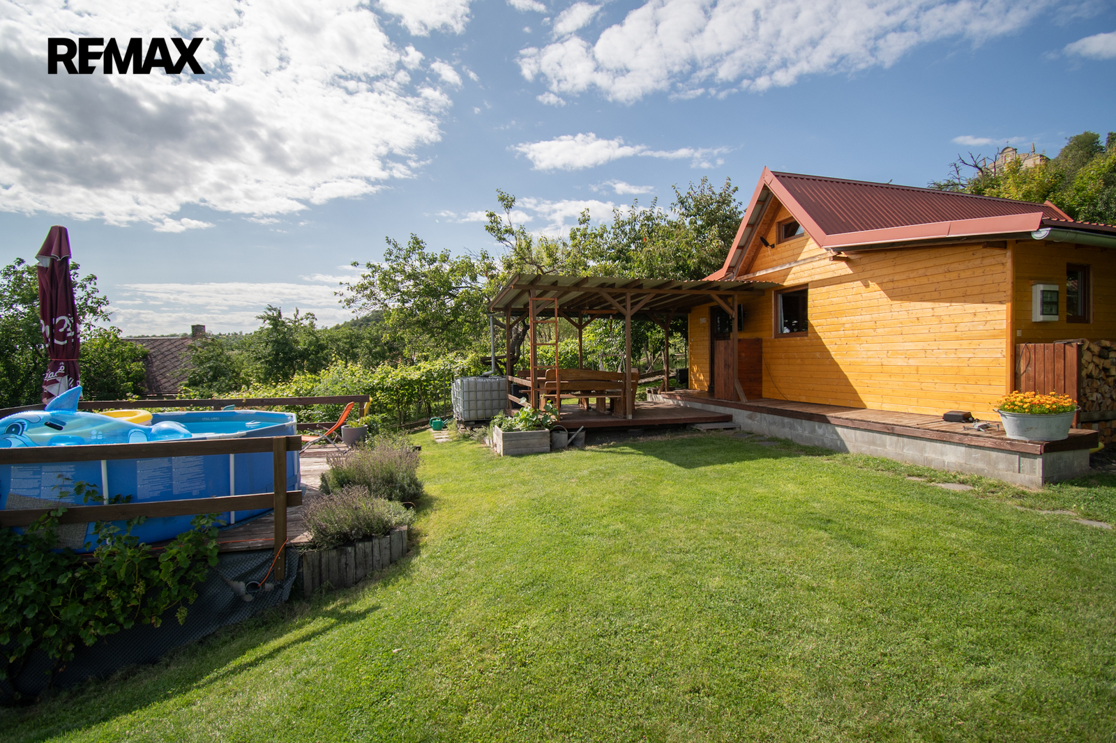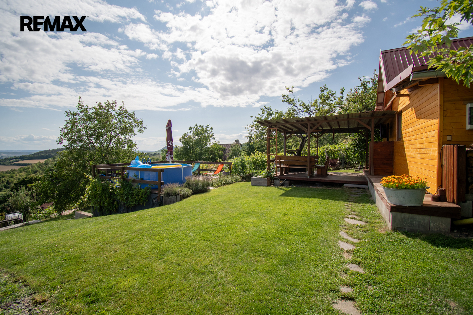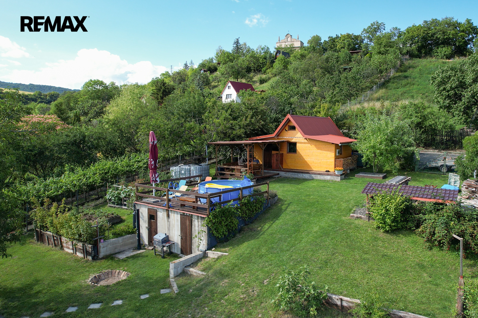 Jednou z výrazných předností této nemovitosti je kromě nádherného výhledu do okolní krajiny i udržovaný stav zahrady. Nemovitost poskytuje klidné a příjemné prostředí pro každodenní o celoroční relaxaci. Pozemek je také velmi dobře dostupný po silnici, což usnadňuje cestování a přístup k městské infrastruktuře. Na pozemku najdeme ovocné stromy: meruňka, třešeň, višeň, jabloně, švestka, rybíz, angrešt.