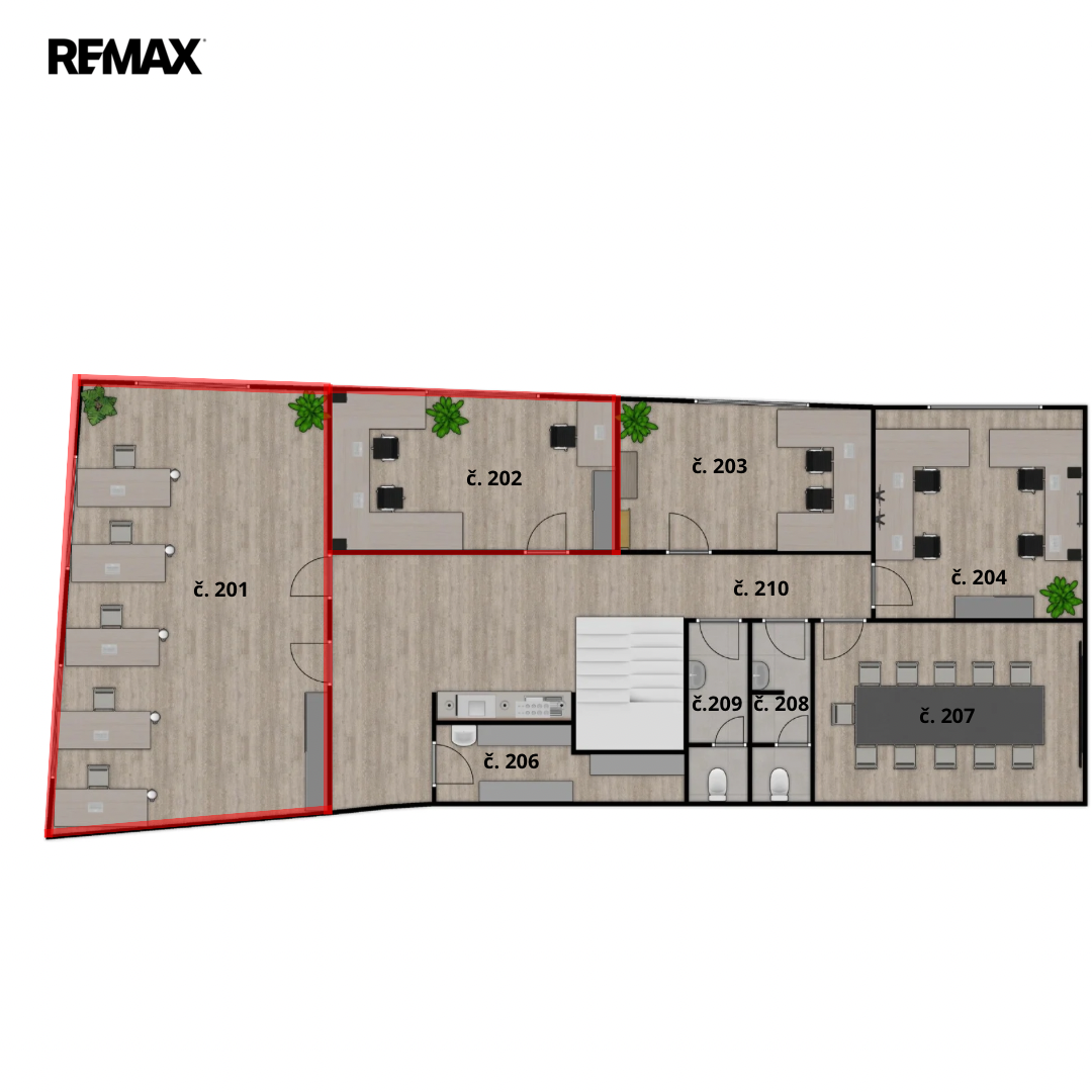 Kancelář je možné pronajmout se zařízením nebo nezařízené, s napojením na telefon a internet. Pohodlné, kapacitní parkoviště se nachází v přímém sousedství budovy. Nabízí se i možnost vlastního individuálního parkovacího stání s kamerovým dohledem v oploceném areálu. Výborná je dostupnost občanské vybavenosti a služeb v blízkosti lokality - pošta, obchody, restaurace, čerpací stanice, nabíječka elektromobilů, myčka, atd.. To vše je umocněno vynikající dostupností lokality, spočívající v napojení na hlavní průtah městem - ulici Hranickou, s přímým napojením na dálniční přivaděč dálnice D1.
