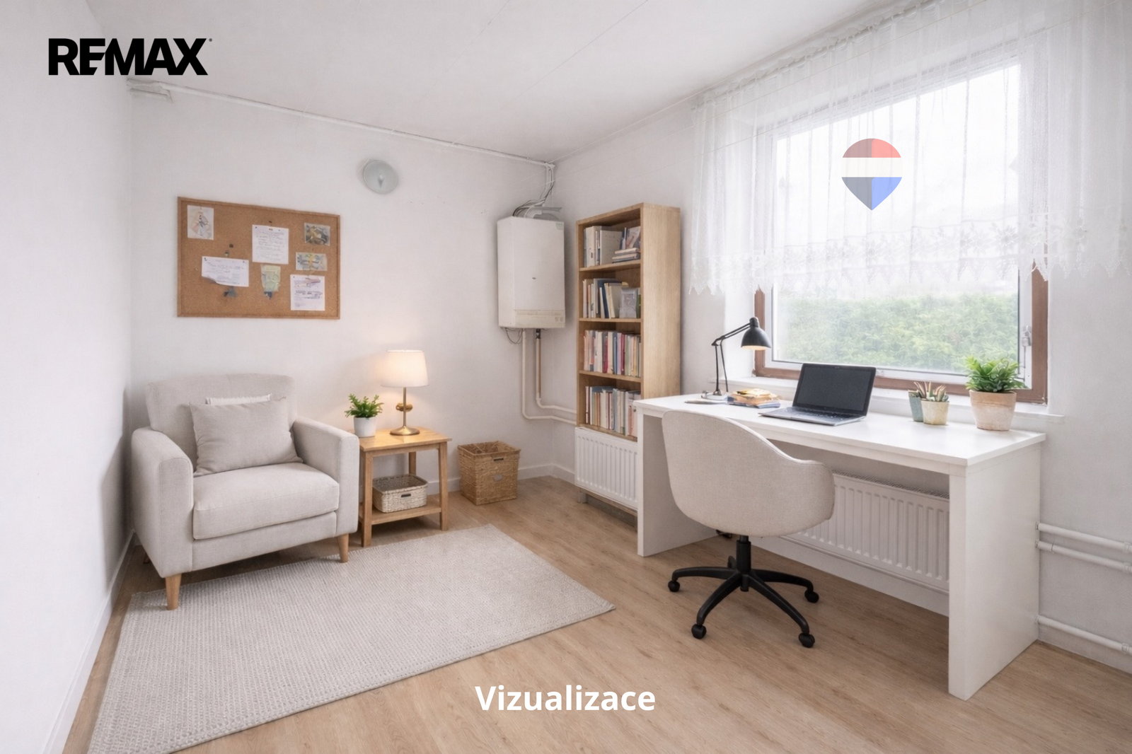 Velký obývací pokoj, další pokoj a dva menší pokojíčky. Pro děti? Naprosto ideální. Vlastní hrací království, kde mohou mít svůj svět, svoje úkryty, svoje příběhy. Místo, kam dospělí chodí jen na návštěvu. Kuchyně zde čeká na nové zpracování – ideální příležitost vytvořit si ji přesně na míru. Naproti kuchyni je navíc prostor pro jídelní stůl, takže i tady může vzniknout plnohodnotné zázemí pro každodenní život. Koupelna a WC už jsou k dispozici.