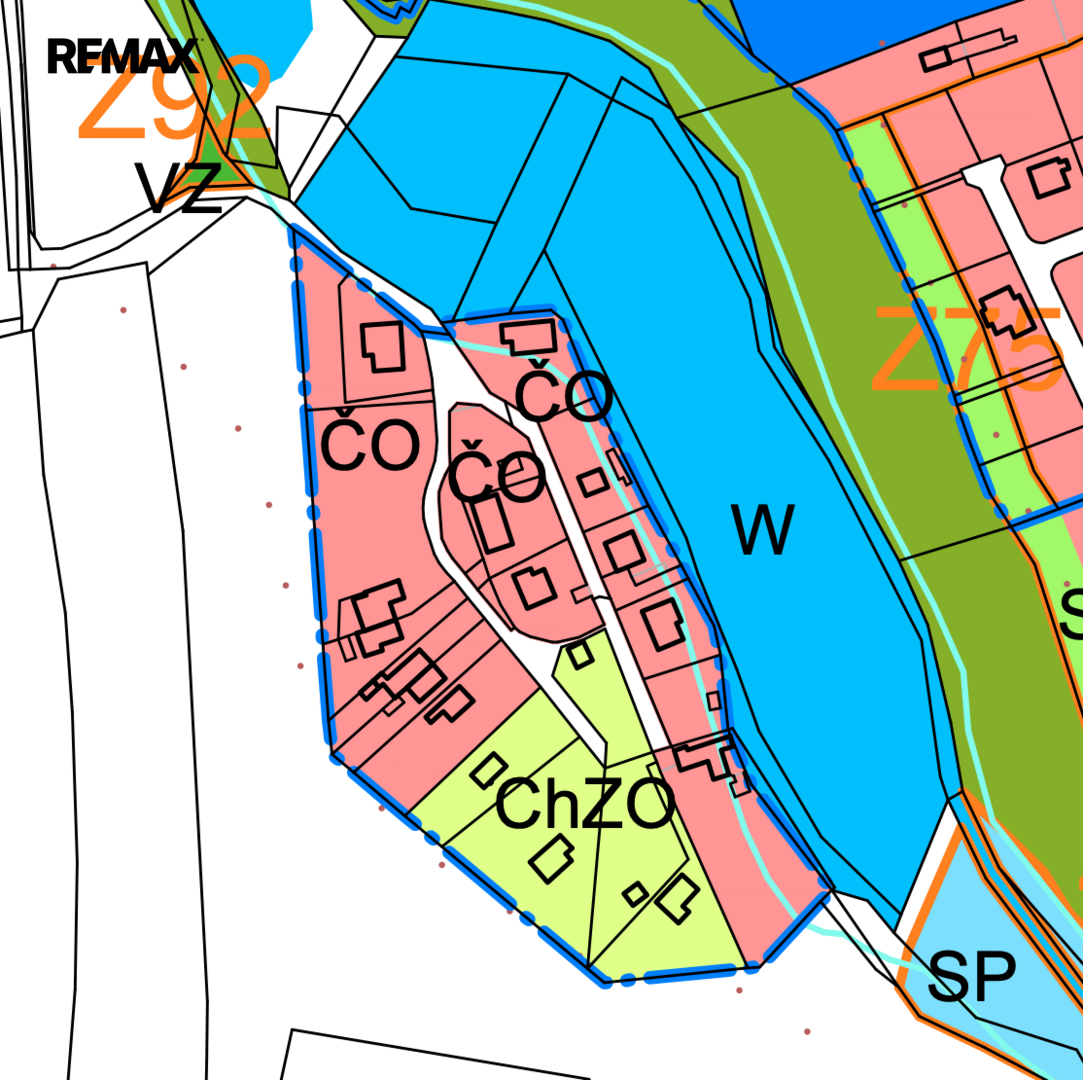 Pozemek se nachází v území "ČO" - čistě obytné území. Dle územního plánu je zde možno postavit RD max 2 nadzemní podlaží + podkroví, zastavěnost pozemku 30%.