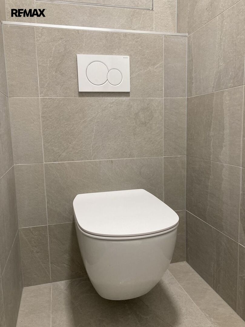 Koupelna je vybavena sprchovým koutem, umyvadlem, zrcadlovou skříňkou, topným žebříkem a bojlerem na ohřev TUV, WC je samostatné. V zádveří je věšák s botníkem a zrcadlem. Byt má elektrické úsporné podlahové vytápění s vlastní regulací v každé místnosti a elektricky ovládané venkovní žaluzie. Dům má společnou TV anténu, kabelovou televizi, internet. Výhled z bytu je orientován do zeleně (směrem k potoku a sousedícímu domu na Komenského, nikoli do ulice).