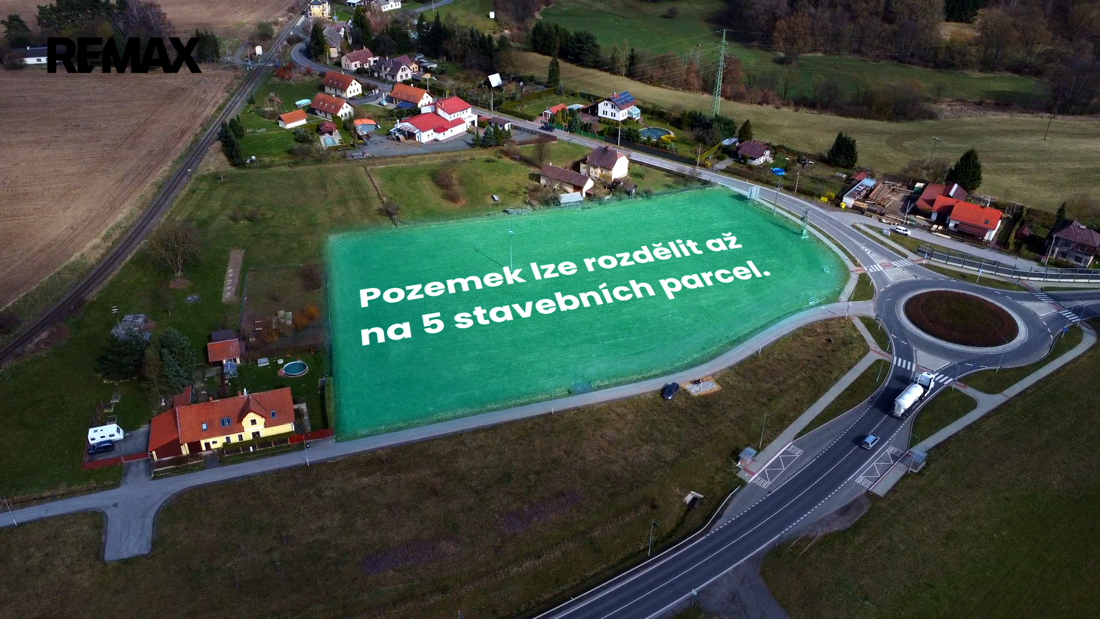 Pozemek je možné rozdělit na dalších 5 stavebních parcel, což z něj dělá výbornou investiční příležitost pro development. Koeficient zastavění pozemku (KZP) je 0,40, což je velmi velkorysé. Dle územního plánu je zde možné stavět Plochy smíšené obytné - venkovská obytná zástavba smíšená (BVS).