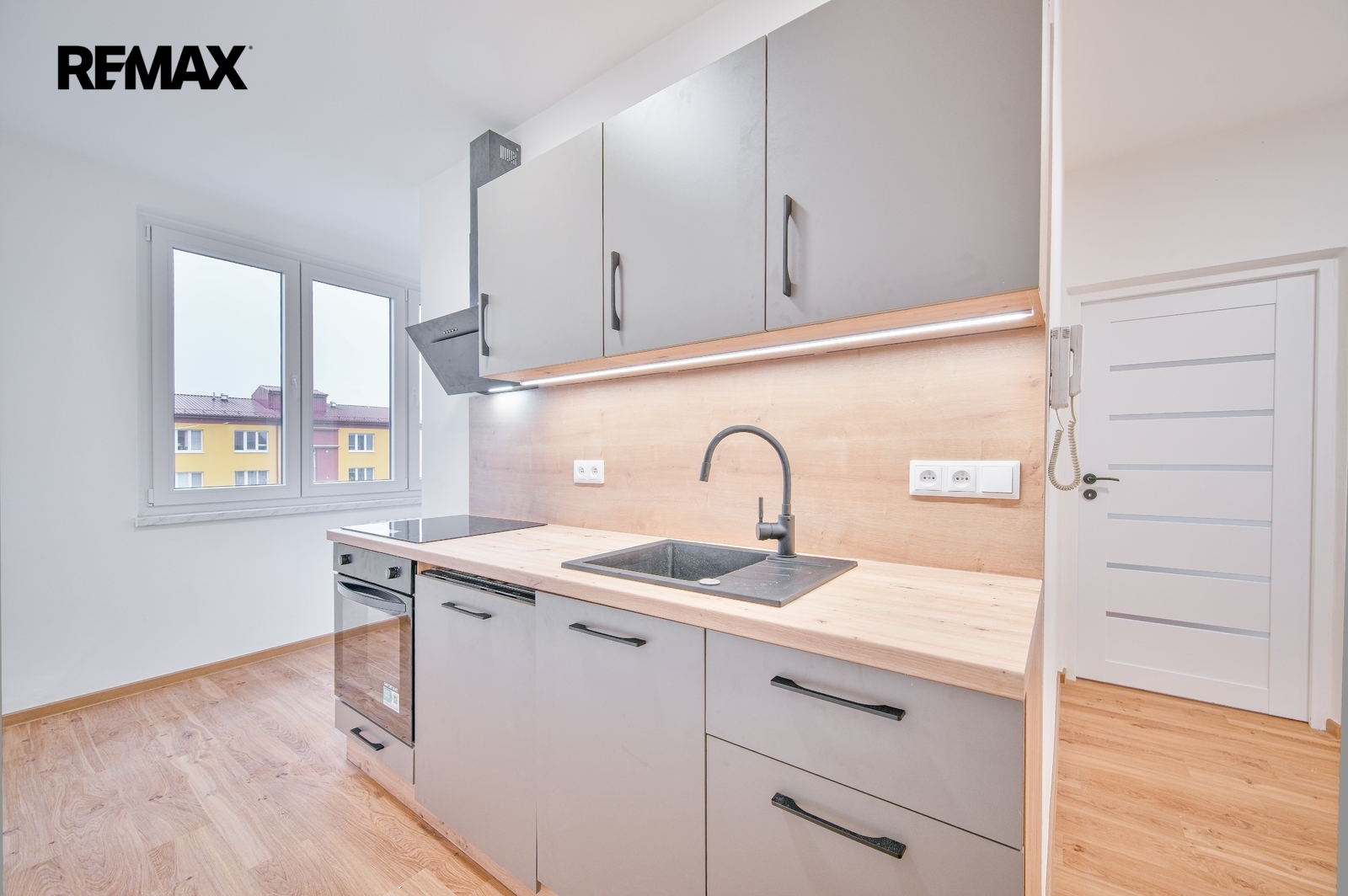 Ve výhradním zastoupení nabízíme k pronájmu byt s dispozicí 2+1 o podlahové ploše 54 m2 v osobním vlastnictví, který se nachází v 8.NP (7.patře) panelového domu o 8. podlaží s výtahem. Byt je aktuálně těsně po dokončení velmi povedené rekonstrukce. Nové zděné jádro, velmi pěkně designově sladěno s celým interiérem bytu. Nové rozvody elektřiny. Nová krásná vinylová podlaha v celém bytě. Bytová jednotka byla rekonstruována s citem a za pomocí kvalitních materiálů.