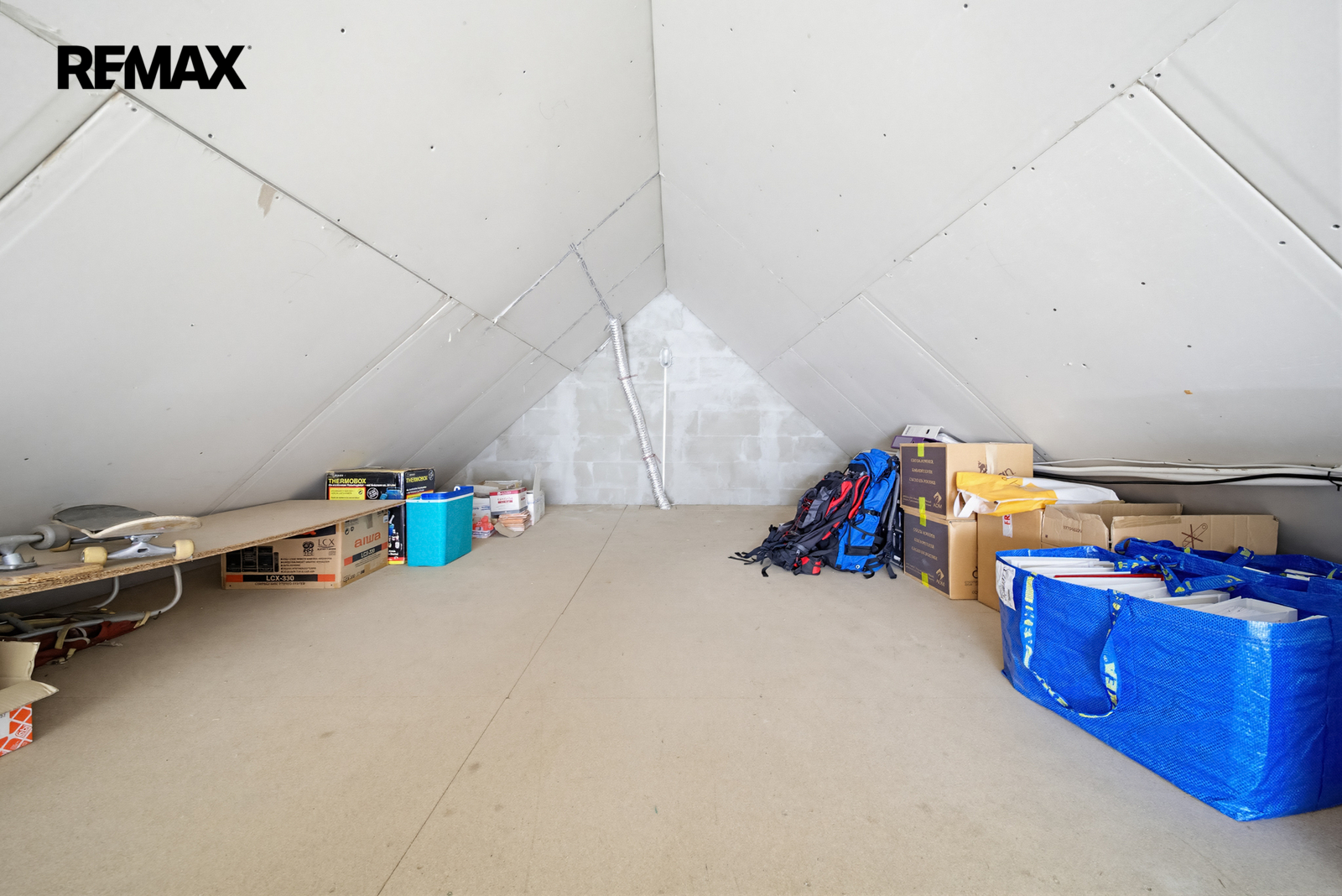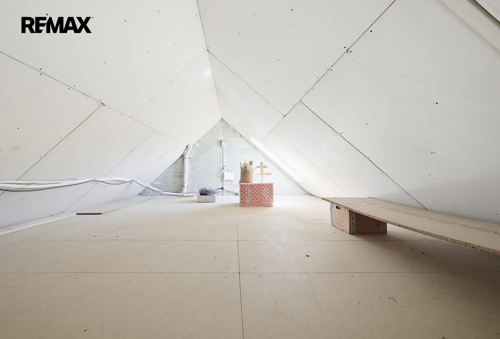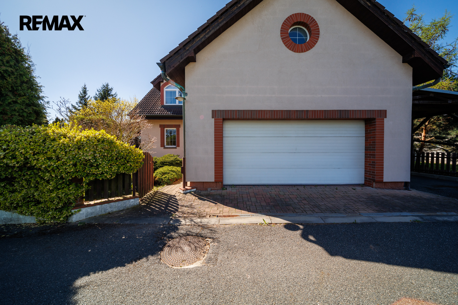 Dům dále disponuje pochozí půdou (cca 64 m²) vhodnou jako úložný prostor, dvojgaráží s navazující dílnou a krytým parkovacím stáním. Samozřejmostí je vjezd přímo na pozemek.