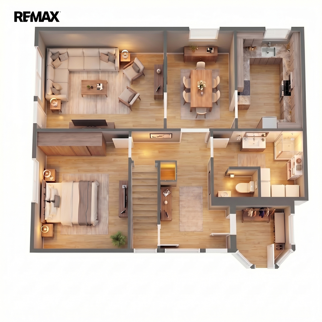 Dispozice domu je prakticky řešená a nabízí dostatek prostoru pro rodinu i práci z domova. V přízemí najdete světlý obývací prostor propojený s kuchyní a jídelnou, dále pokoj pro hosty a koupelnu. V patře jsou k dispozici dva pokoje, ložnice a pracovna, kterou lze snadno využít jako další dětský pokoj. Nechybí ani druhá koupelna.
