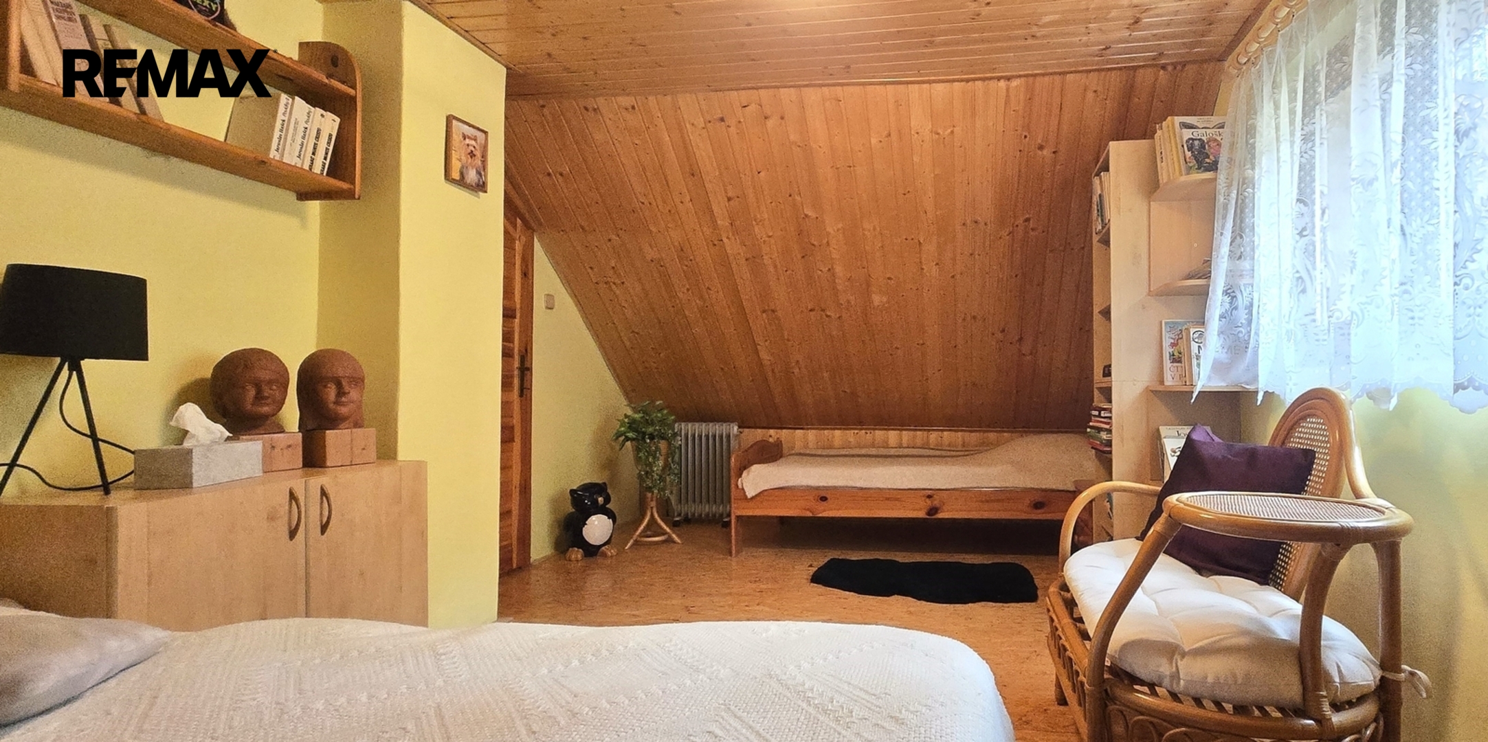 • 3 pokoje (dva pokoje v podkroví, jeden pokoj za obývacím pokojem)