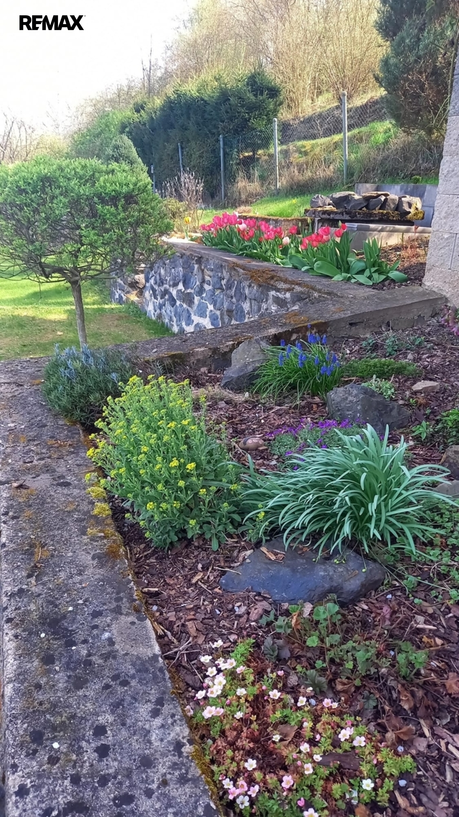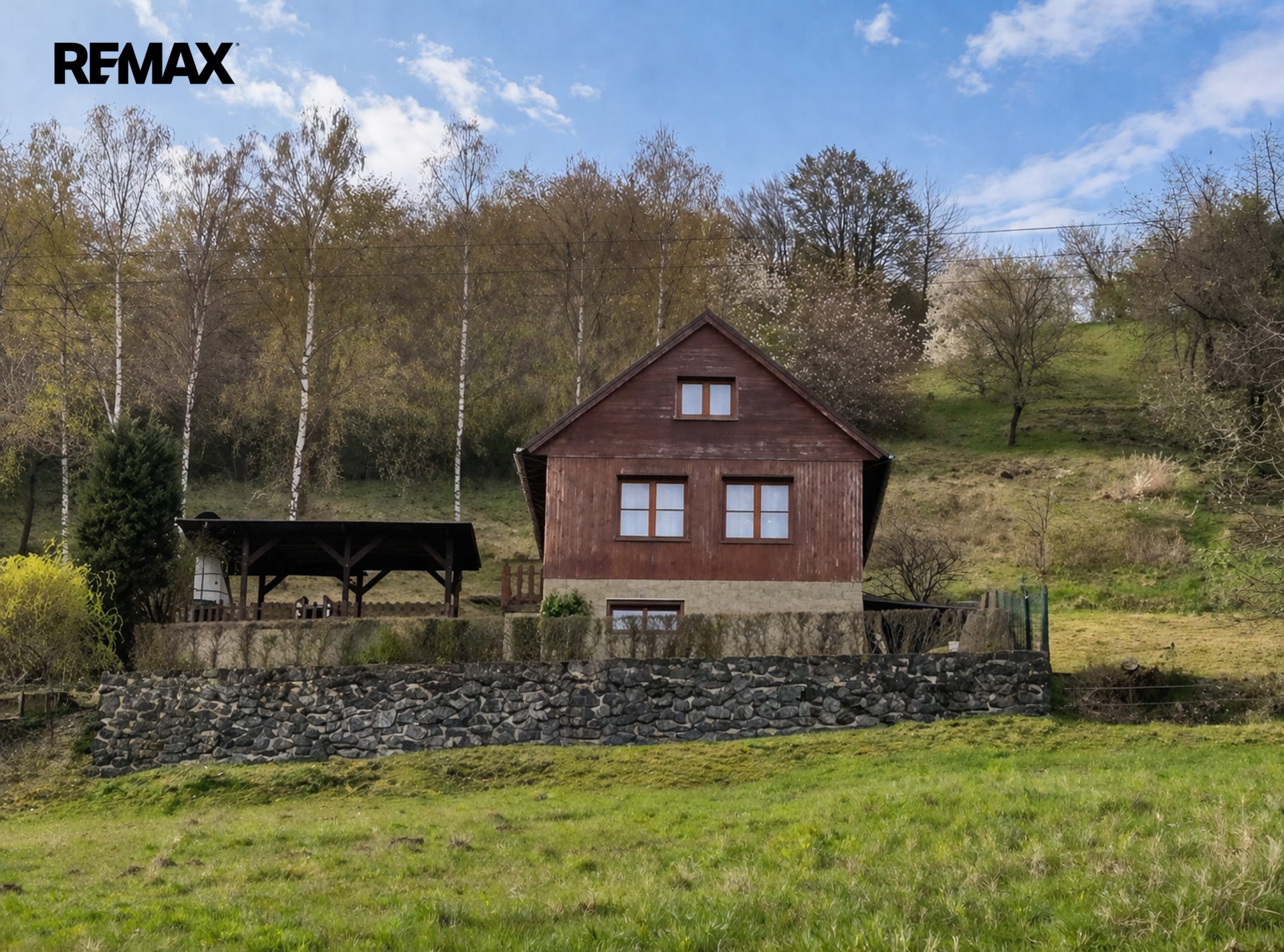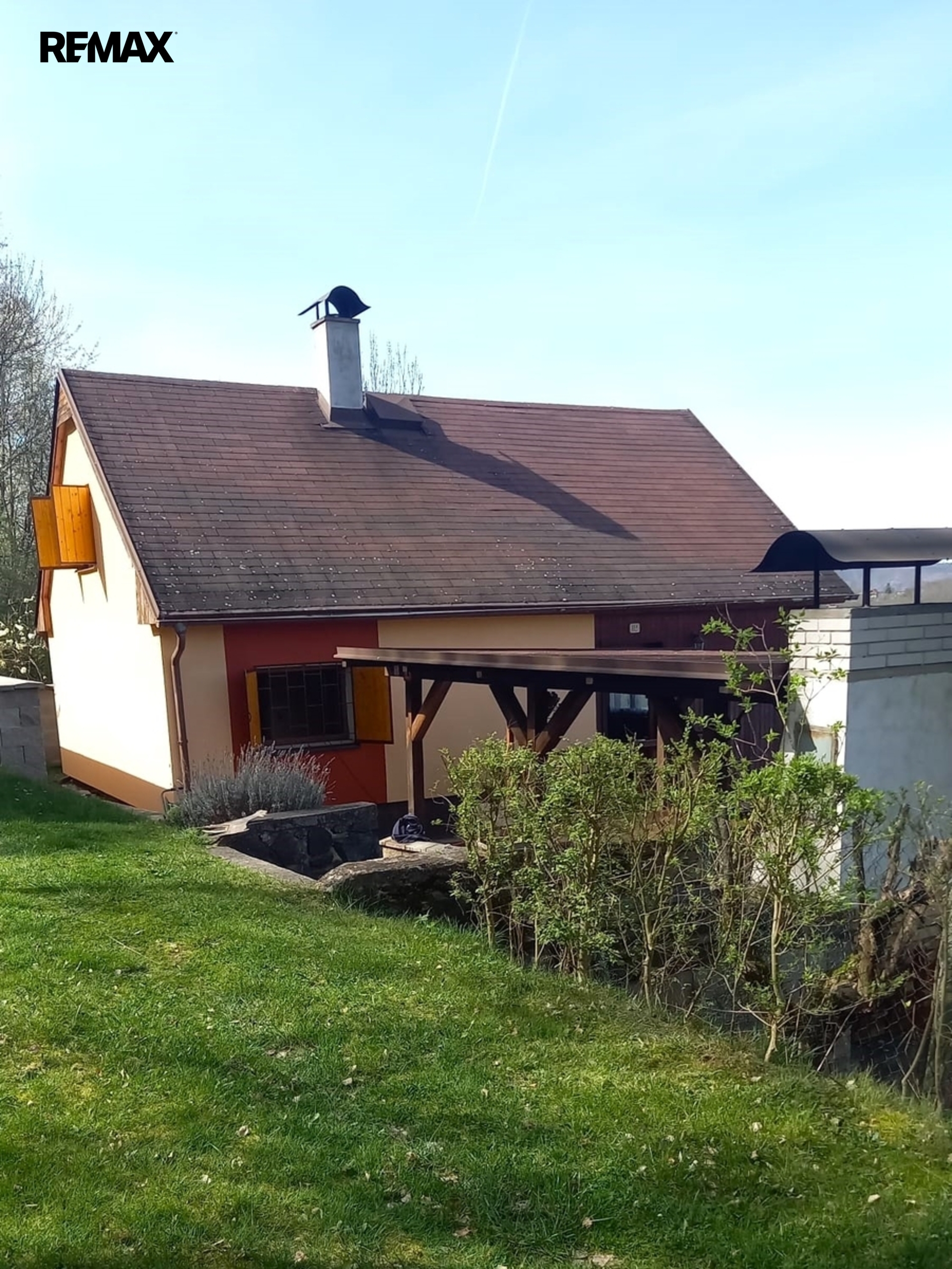 Příjemně si posedíte pod pergolou, kde se nachází zahradní krb s udírnou. Dále navazuje okrasná zahrada s ovocnými stromy (švestka, meruňka, třešeň), nechybí ani důležitý kompost.