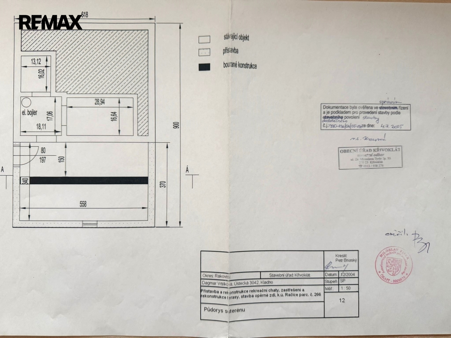 • sklep, prostor na uložení nářadí, umístěn bojler a čerpadlo