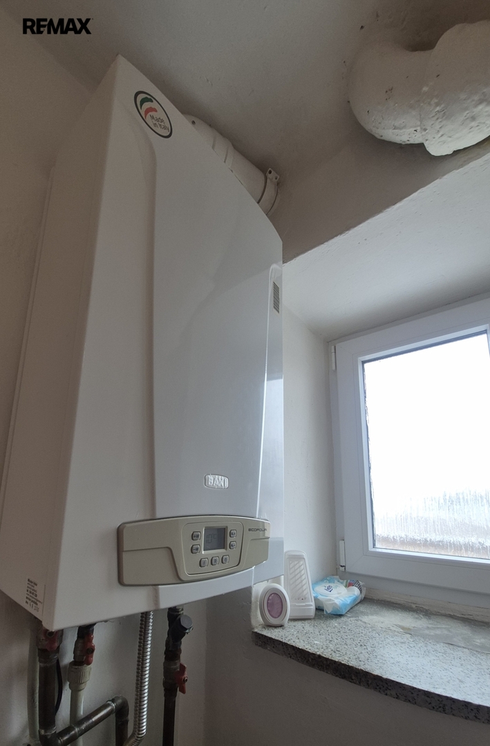 Vytápění a ohřev TV je vlastní kombinovaným plynovým kotlem. Plynový kotel je zánovní.