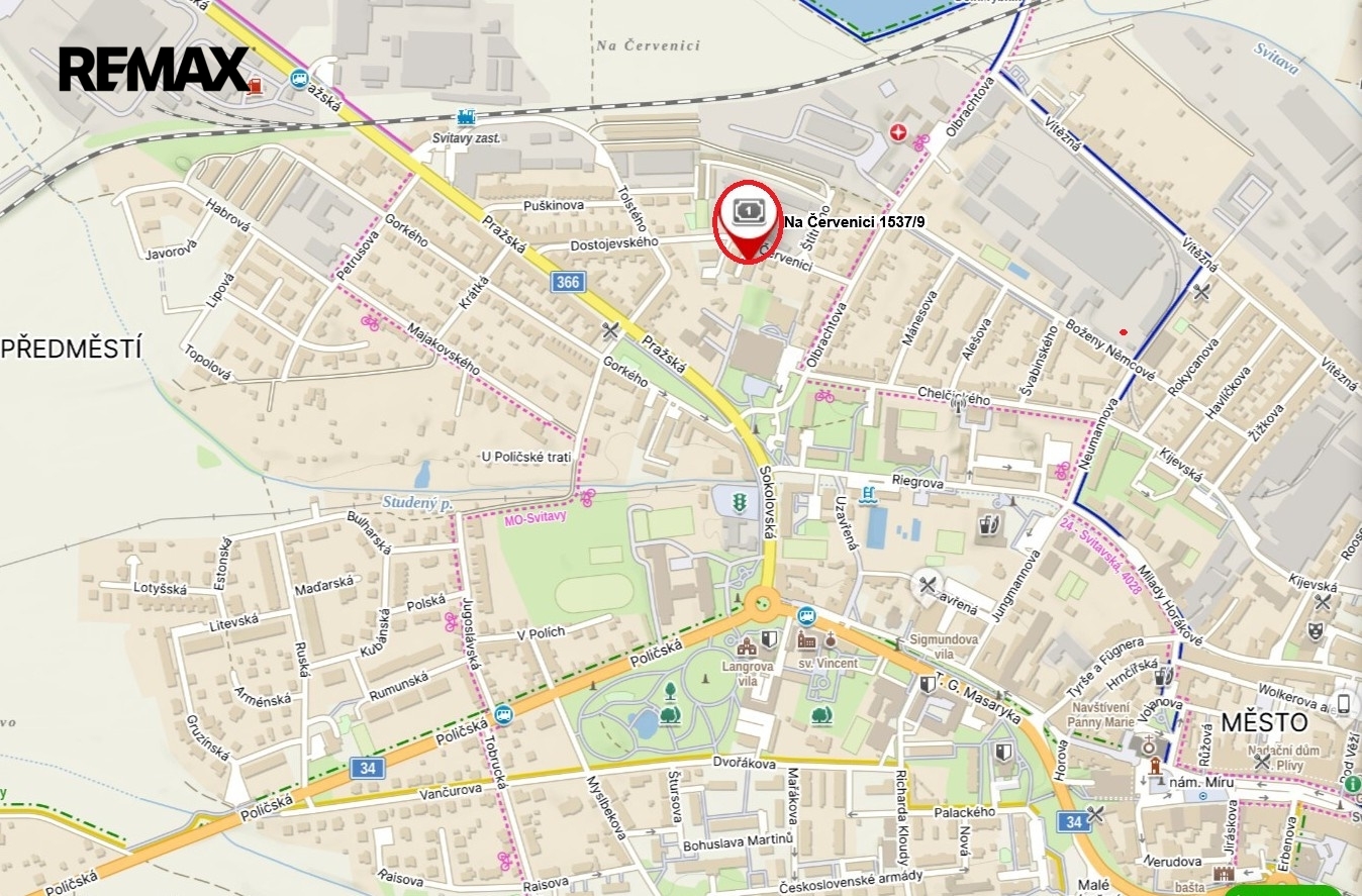 Nedaleko domu se nachází obchod, školy (MŠ, ZŠ), sportovní hala a Svitavský rybník.
