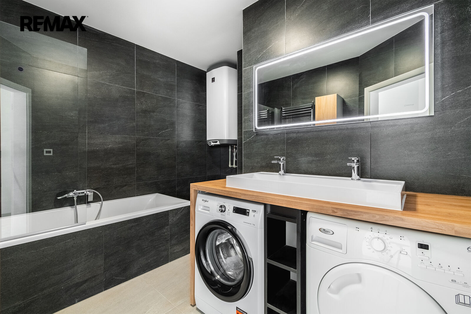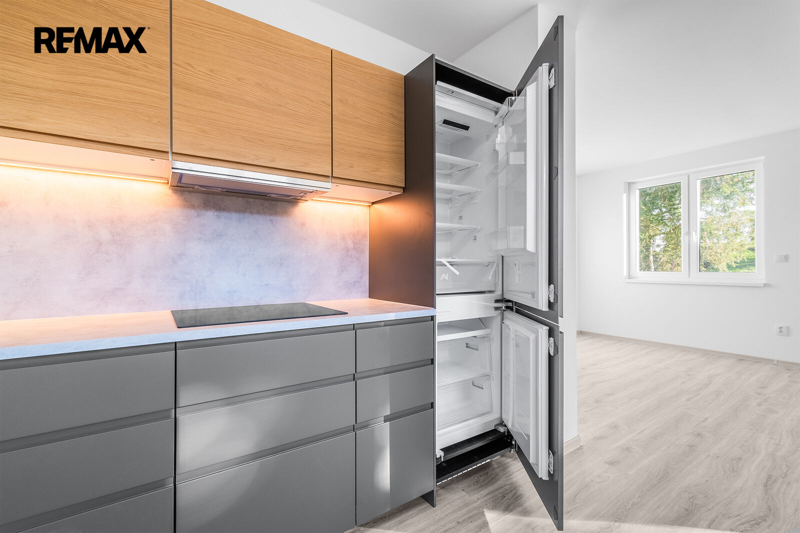 Byt je zařízen novou moderní kuchyňskou linkou, s kvalitními spotřebiči - lednice s mrazákem, mikrovlnná trouba, vestavná trouba a sklokeramická indukční deska. Koupelna je vybavena pračkou i sušičkou. Velkou výhodou je dále podlahové topení a příprava pro krbová kamna.