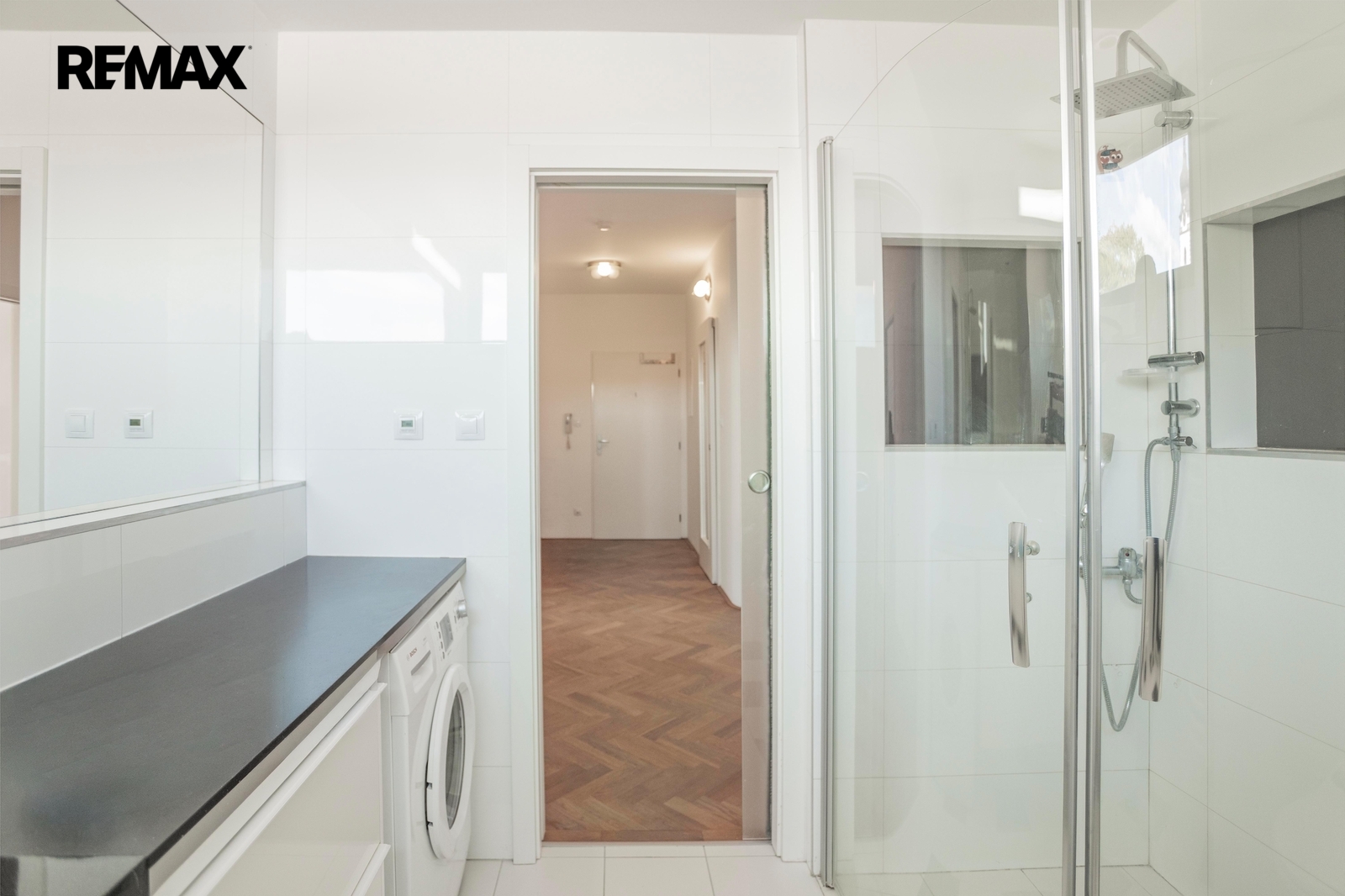 Centrem celého bytu je obývací pokoj s kuchyňským koutem o výměře 29.00 m2. Právě tady se bude odehrávat každodenní život, od klidných rán až po večery s rodinou nebo přáteli. Na tuto místnost navazuje balkon, jehož součástí je markýza, takže poskytne příjemné zázemí i během teplejších dnů. Příjemnou atmosféru interiéru doplňují dřevěné parkety a celkově praktická dispozice, díky níž byt působí útulně i reprezentativně zároveň.