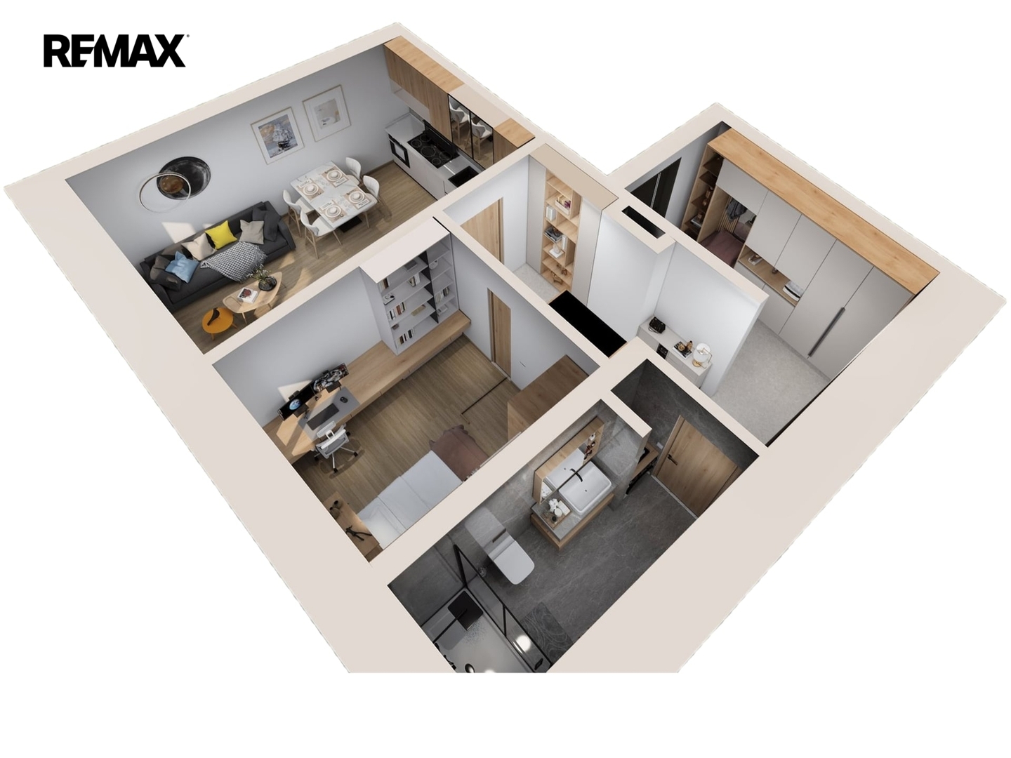 V exkluzivním zastoupení nabízíme prodej moderního bytu o dispozici 2+kk s podlahovou plochou 52,8m², umístěného v 3. nadzemním podlaží rekonstruovaného bytového domu na Masarykově náměstí ve Vyškově.