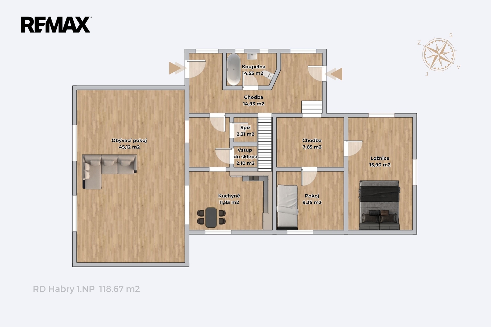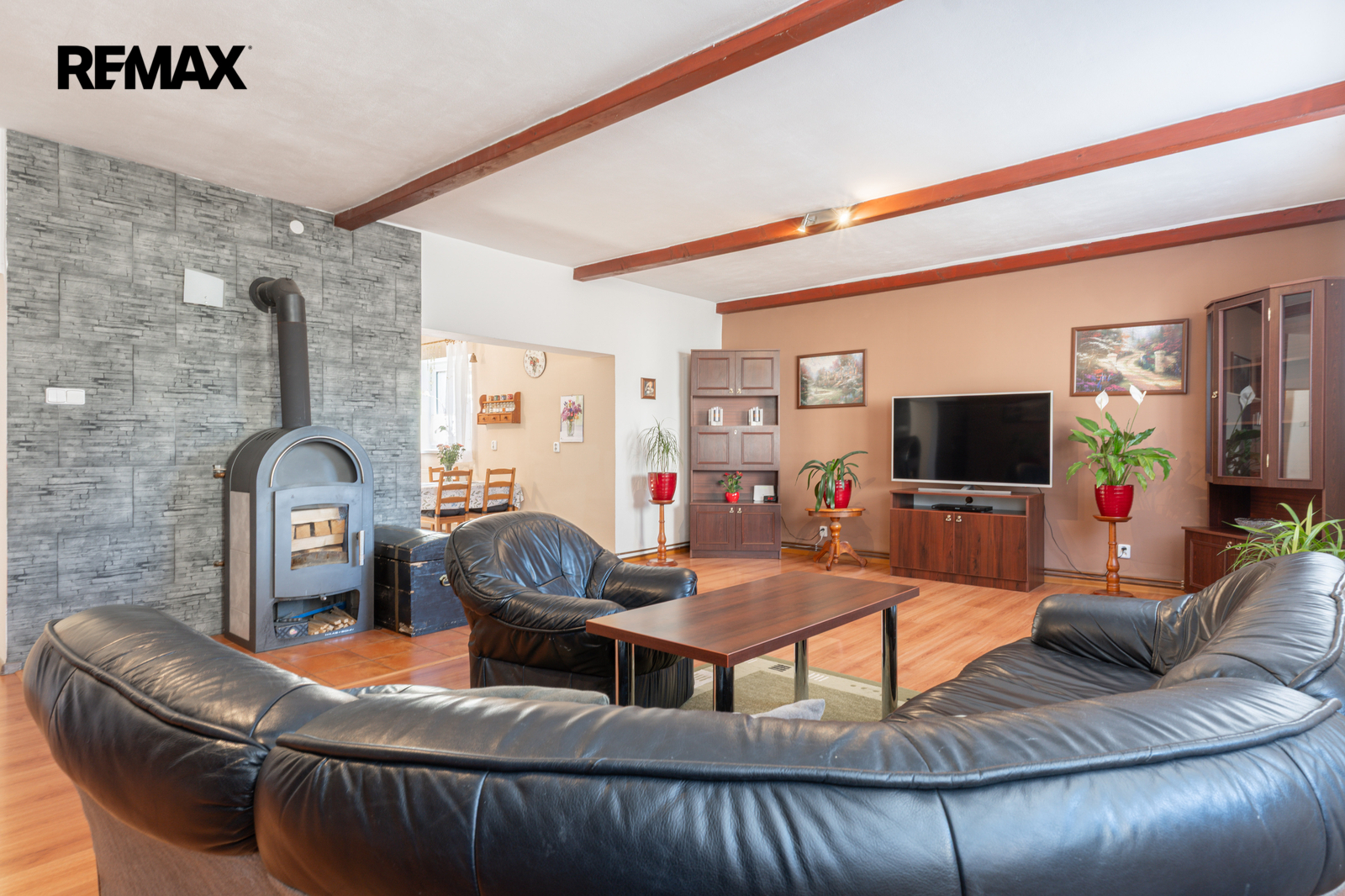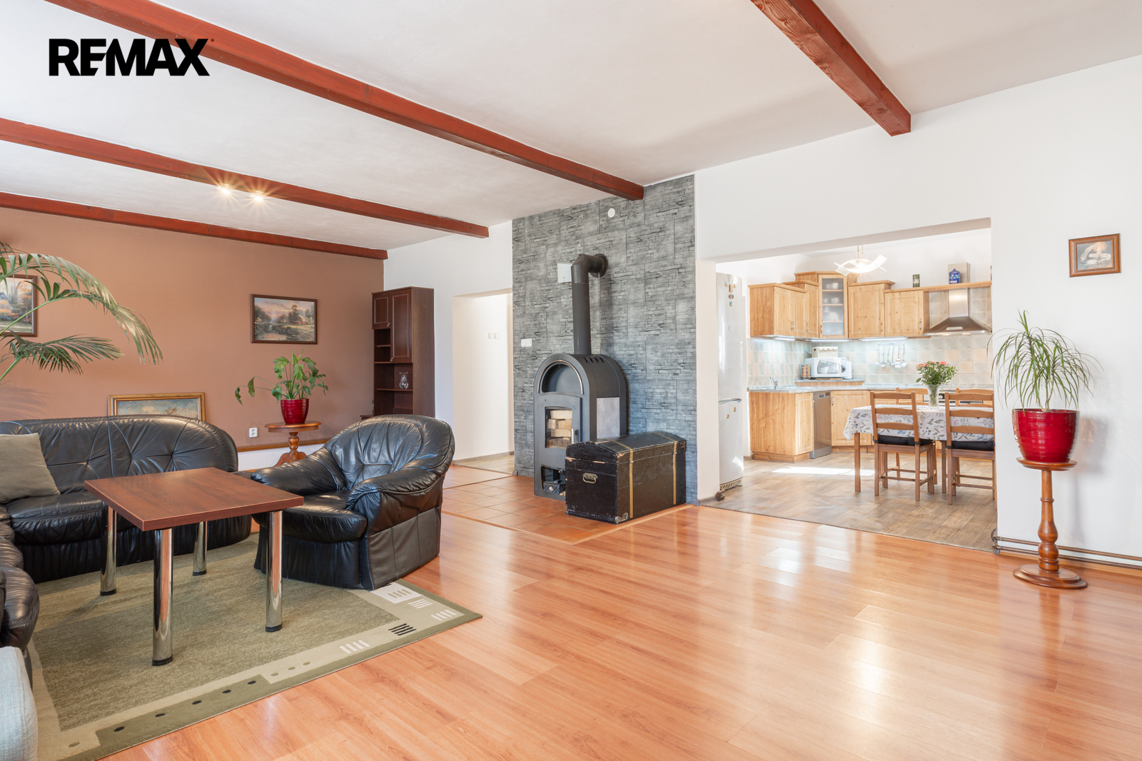 Interiér prošel v posledních letech rozsáhlou proměnou a nabízí velkorysých 180 m² obytné plochy v dispozici 5+1. Srdcem přízemí je ohromující obývací pokoj o rozloze 45 m², kde atmosféru dotvářejí stropní trámy a moderní krbová kamna, která v zimě vykouzlí to pravé teplo domova. Prostor plynule navazuje na jídelnu a světlou, plně vybavenou kuchyni. Přízemí dále nabízí praktickou pracovnu, ložnici, šatnu a barevnou koupelnu. V roce 2018 bylo vybudováno obytné podkroví se dvěma ložnicemi a druhou koupelnou v elegantním dekoru. Pokud by vám to bylo málo, k dispozici je ještě prostorná půda s vyvedenou podlahou a zateplením, která přímo vybízí k realizaci vašich dalších snů.