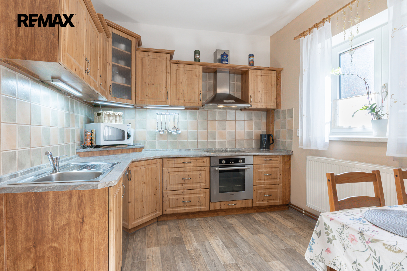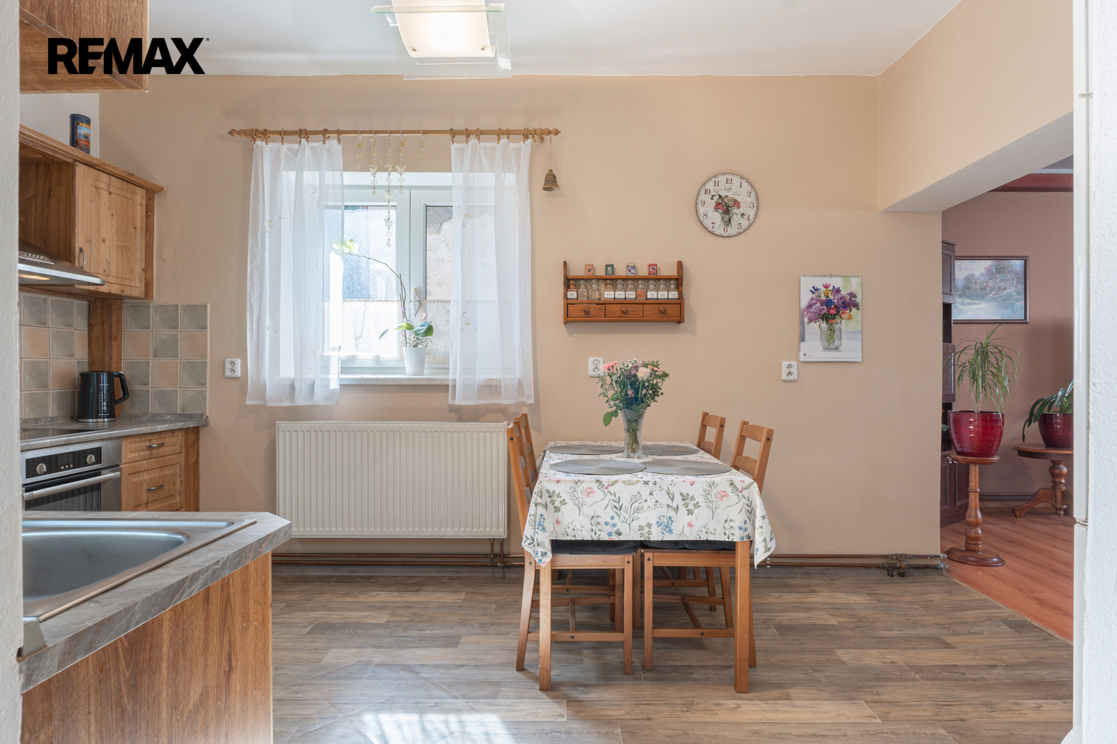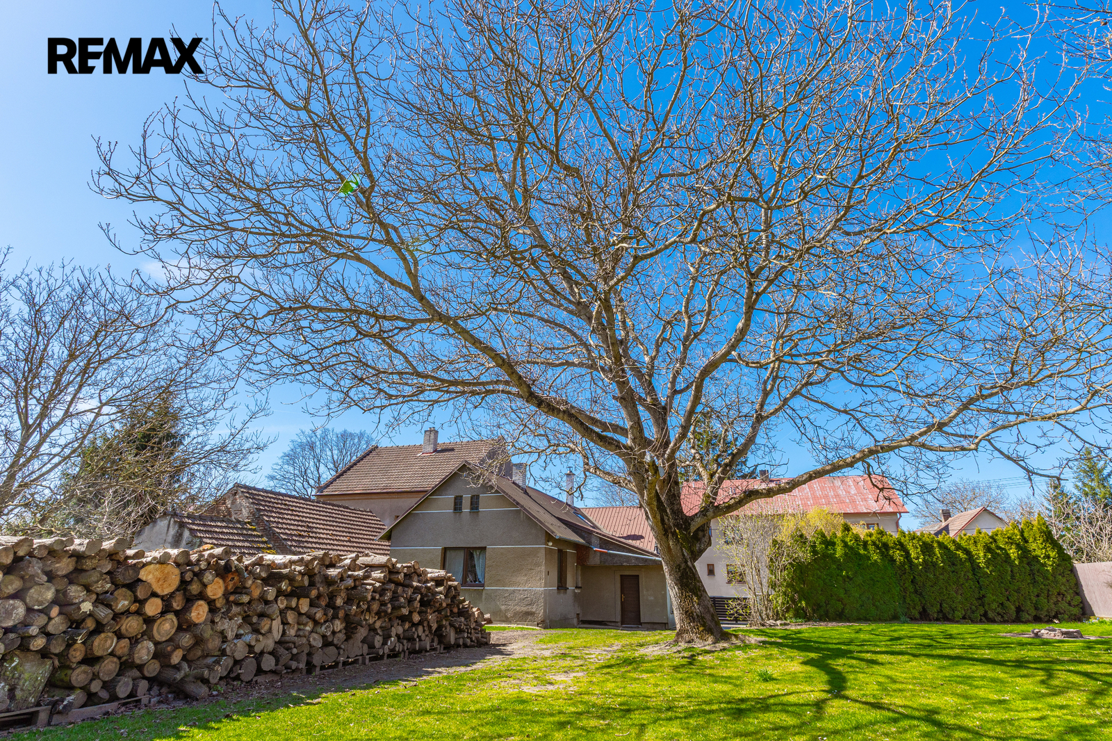 Pokud hledáte bydlení, které v sobě spojuje poctivost starých časů se současným komfortem, pak vás dům na Pražské ulici v Habrech naprosto dostane. Na první pohled vás uvítá klasická břízolitová fasáda z roku 1960, která domu dodává solidní a nenápadný vzhled. Jakmile ale projdete elektrickou vjezdovou bránou z modřínového dřeva a ocitnete se na dlážděném dvoře pod větvemi vzrostlé vrby, pochopíte, že tento dům klame tělem v tom nejlepším slova smyslu.