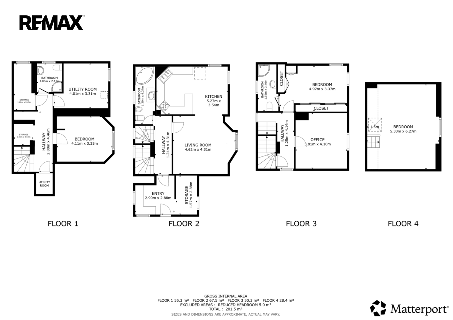 2.NP – ložnice, pracovna/pokoj, koupelna s WC, chodba (celkem 42,8 m2)