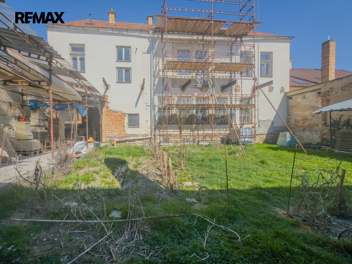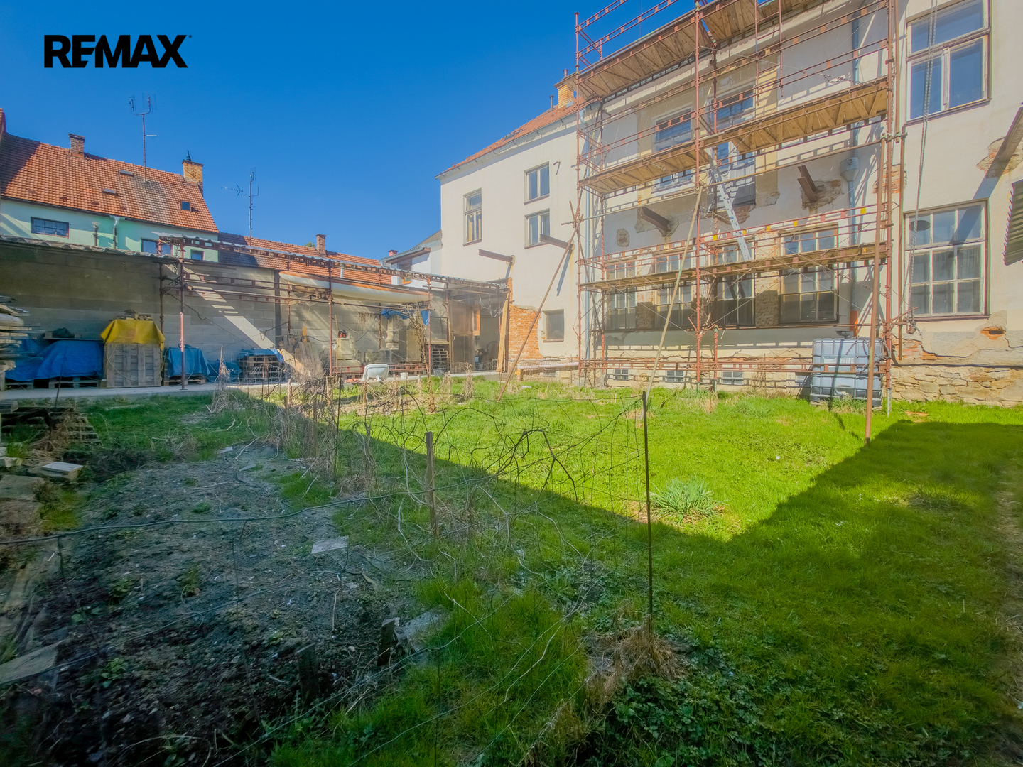 Exteriér: Uzavřený dvůr, který poskytuje naprosté soukromí pro odpočinek nebo parkování.