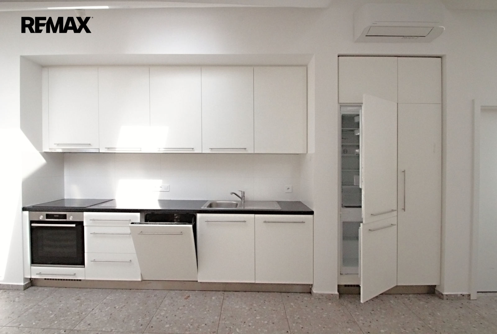 Součástí vybavení je klimatizace, která zajistí příjemné teploty během horkých letních měsíců. Podlahové topení pak přispívá k útulné atmosféře a rovnoměrnému rozložení tepla, což oceníte zejména v chladnějším období. Ohřev vody zajišťuje bojler. Byt je nezařízený, což umožňuje novému nájemníkovi zrealizovat si interiér dle vlastních představ a potřeb. Kuchyň disponuje vestavnými spotřebiči jako je varná deska, trouba, digestoř, myčka a lednice s mrazákem.