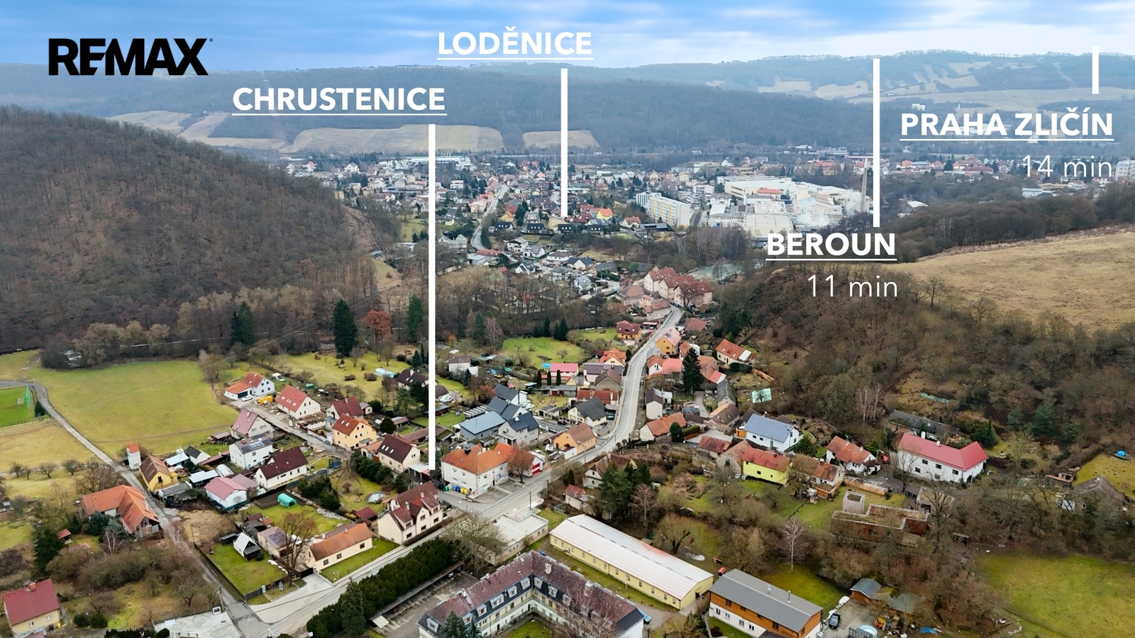 Prodej stavebního pozemku 1063 m² – Chrustenice u Berouna | rovinatý pozemek, inženýrské sítě, výborná dostupnost do Prahy