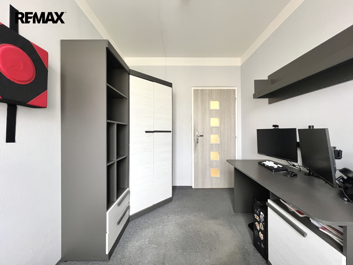 Aktuálně je byt dispozičně řešen jako 4+kk, což je šikovné řešení, pokud potřebujete o 1 místnost navíc.