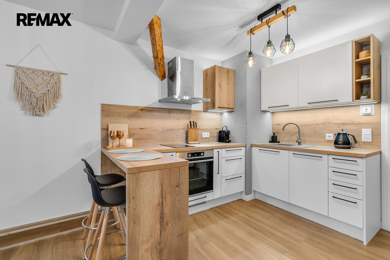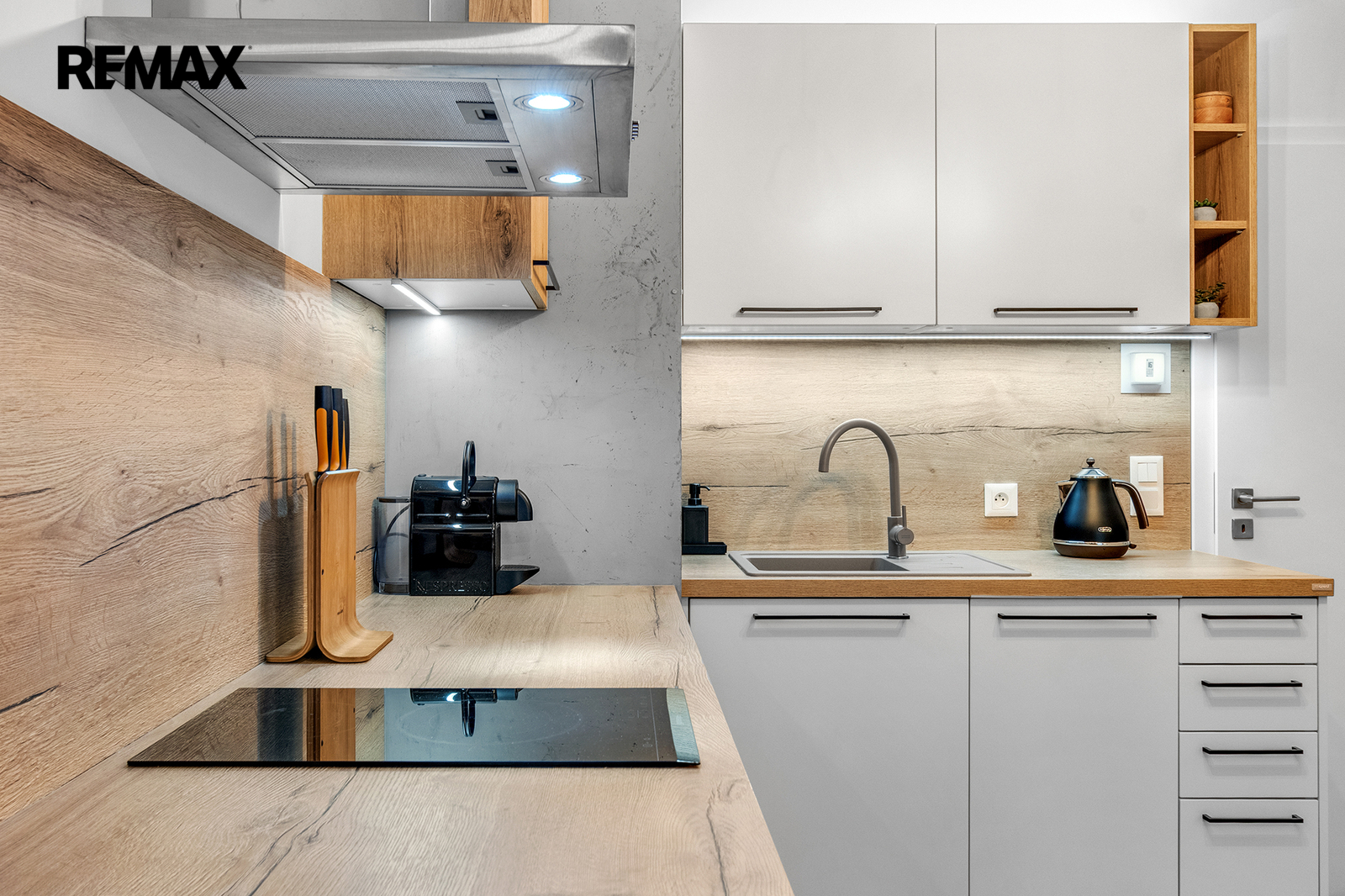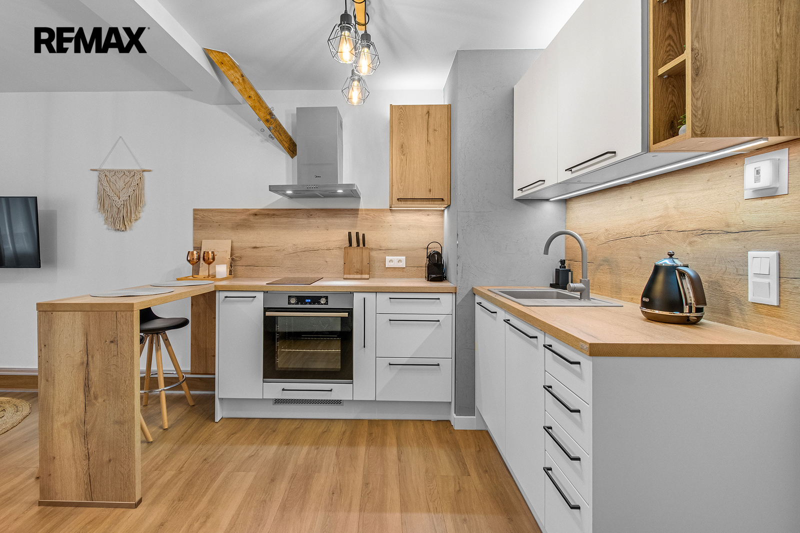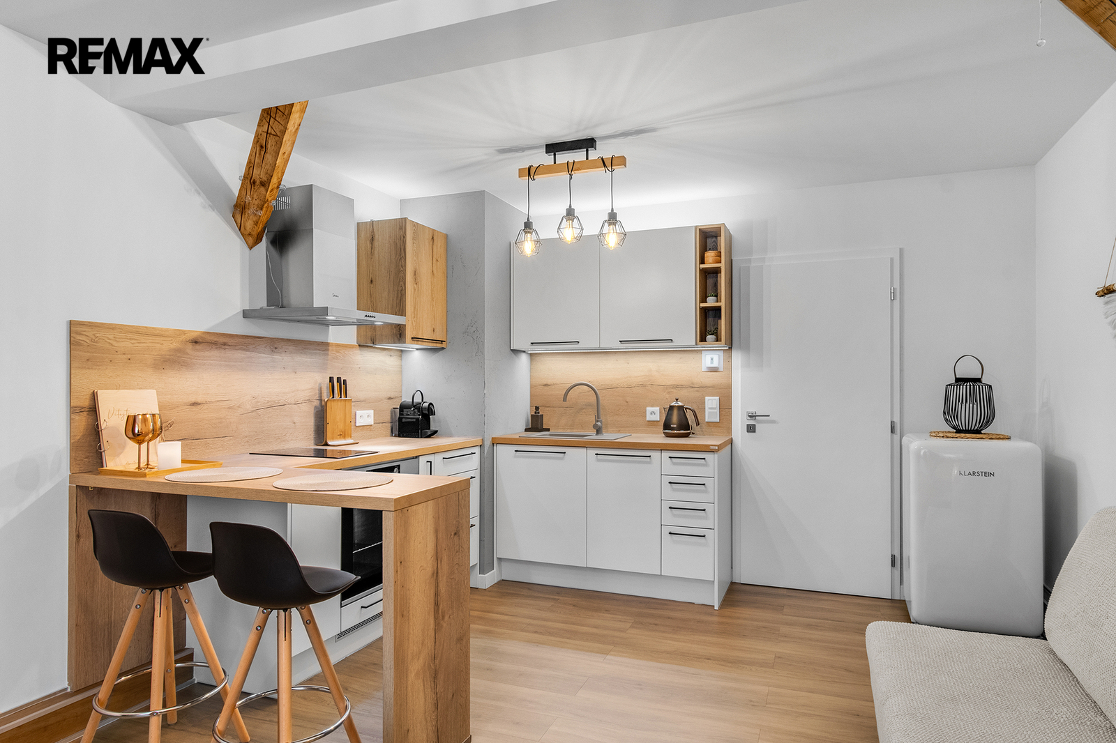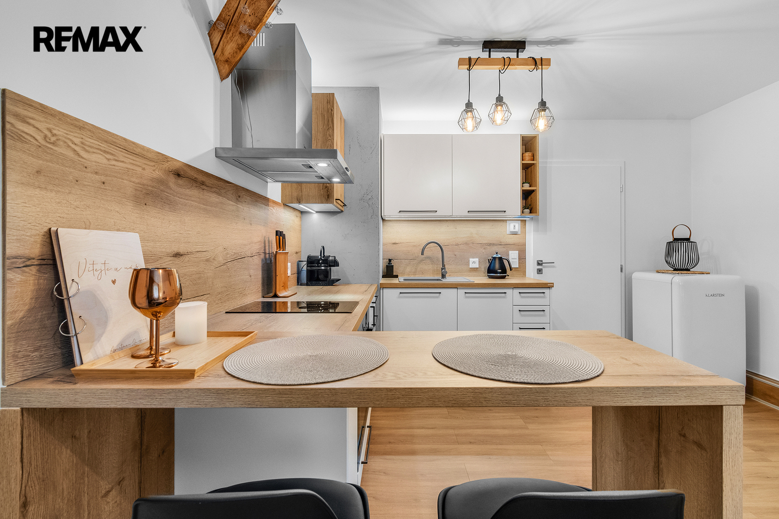 Interiér je řešen velmi prakticky a zároveň stylově – k dispozici je vstupní předsíň s vestavěnou skříní a dřevěnou šatní stěnou, moderní koupelna se sprchovým koutem a toaletou a hlavní obytný prostor propojující obývací část, ložnici a kuchyňský kout. Samozřejmostí je kompletní vybavení, díky kterému je apartmán připraven k okamžitému užívání i pronájmu.