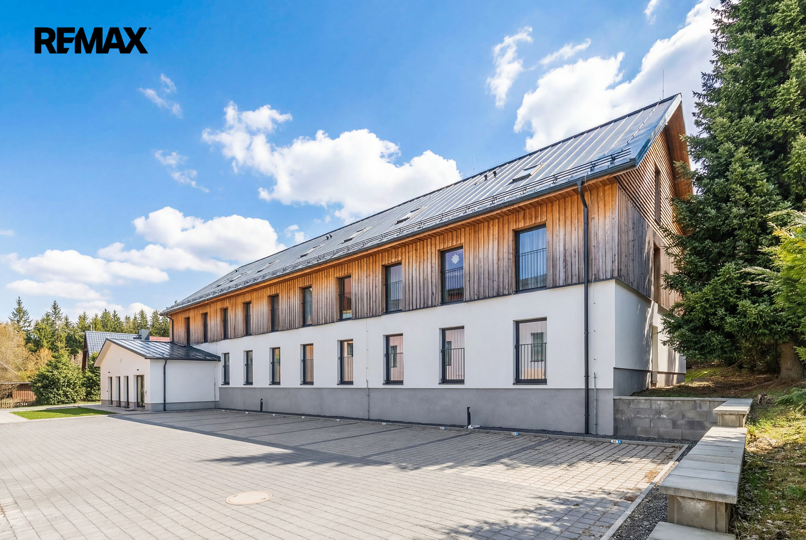 Apartmán o dispozici 1+kk a podlahové ploše 28 m² se nachází ve 3. nadzemním podlaží moderního apartmánového domu (kolaudace 2022), který vznikl citlivou rekonstrukcí bývalého hotelu.