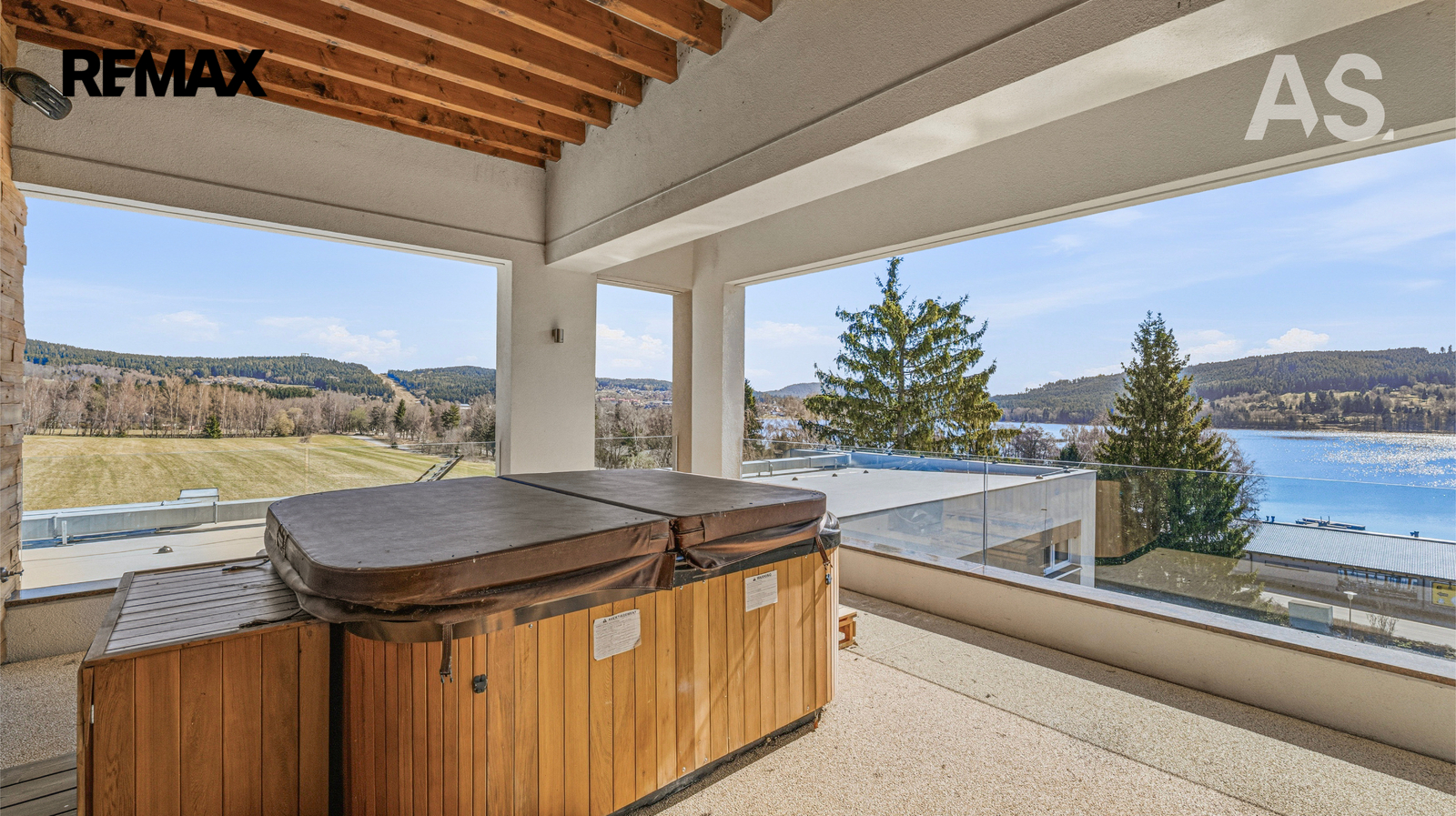 Dispozice 4+kk s užitnou plochou 223 m² nabízí velkorysý obytný prostor doplněný o 92 m² teras s unikátním výhledem na lipenské jezero i sjezdovku, tudíž kombinaci, která je v této lokalitě naprosto výjimečná. Součástí je vlastní výtah přímo do bytu, klimatizace a garáž.
