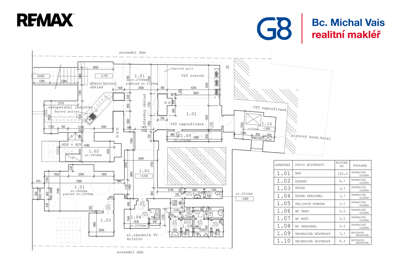 Celý prostor prošel na přelomu let 2018/2019 kompletní rekonstrukcí a je připraven k okamžitému využití bez nutnosti větších vstupních investic. Dispozice nabízí provozní část s barem a posezením, sociální zázemí, technické místnosti i skladové prostory. Vytápění je zajištěno plynovým kotlem.