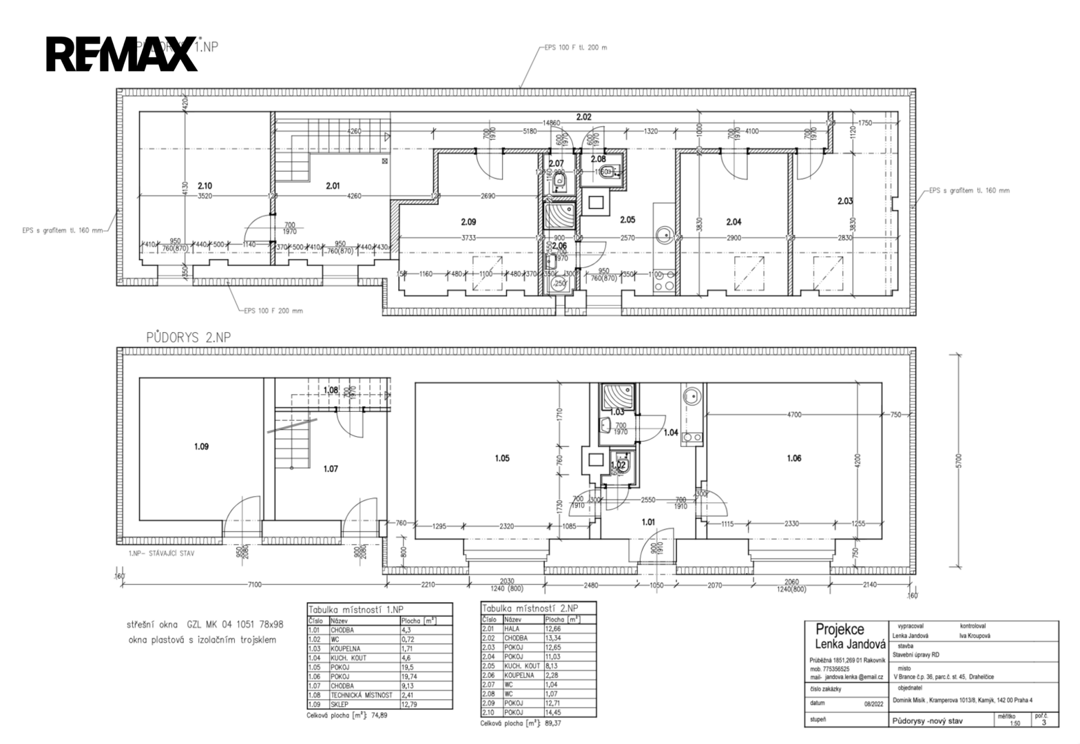 Okna: Plastová s izolačním trojsklem + střešní okna Velux.