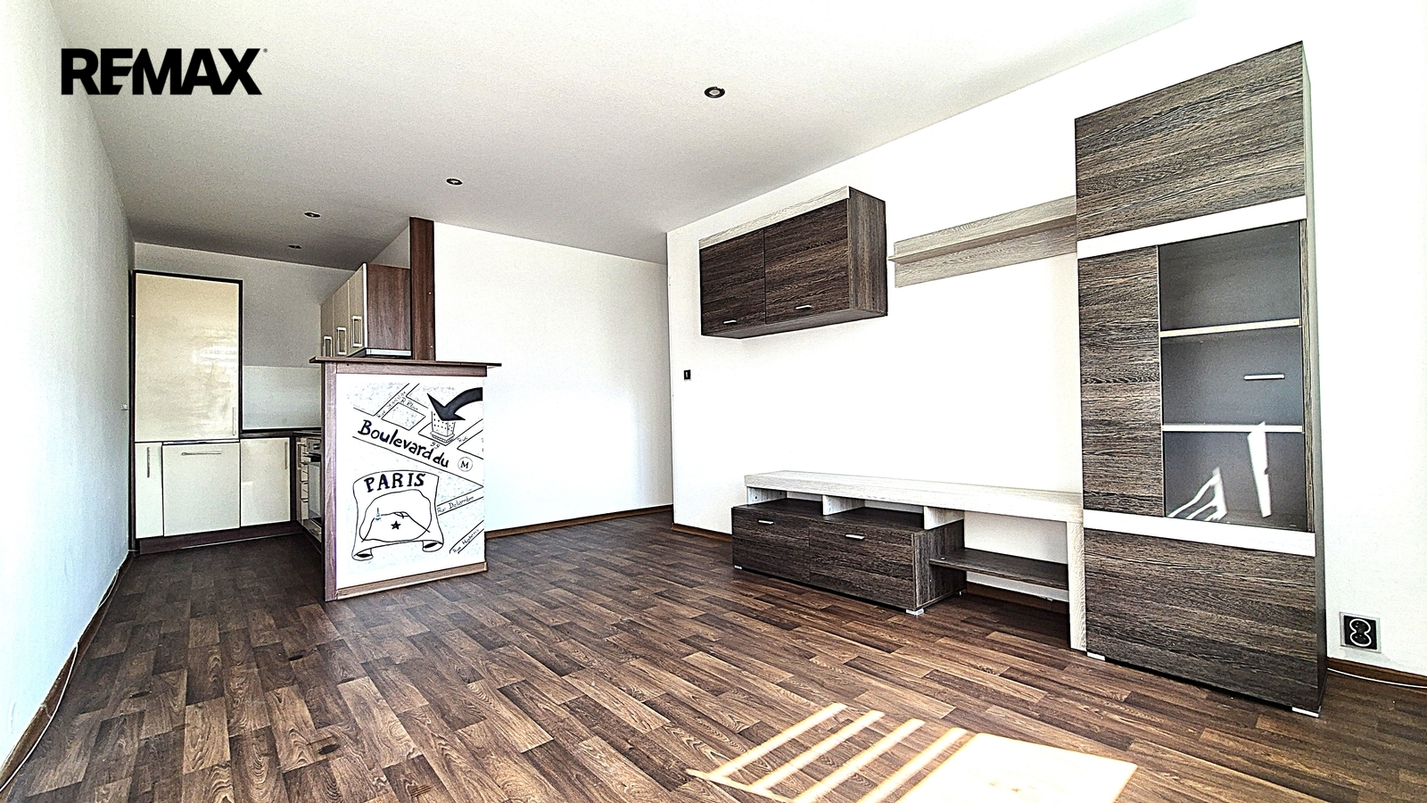 Interiér je částečně vybavený, k dispozici je obývací stěna a TV stolek. Kuchyňská část nabízí kuchyňskou linku, elektrický sporák s troubou a digestoř. Byt má plastová okna doplněná o nové žaluzie, což přispívá k pohodlí i soukromí. Úklid společných prostor v domě je pravidelně zajištěn, takže se nemusíte starat o nic navíc.