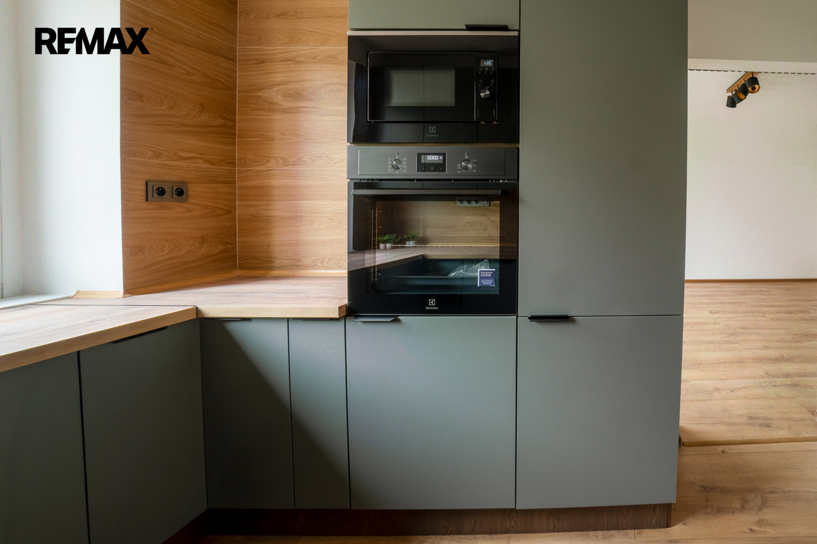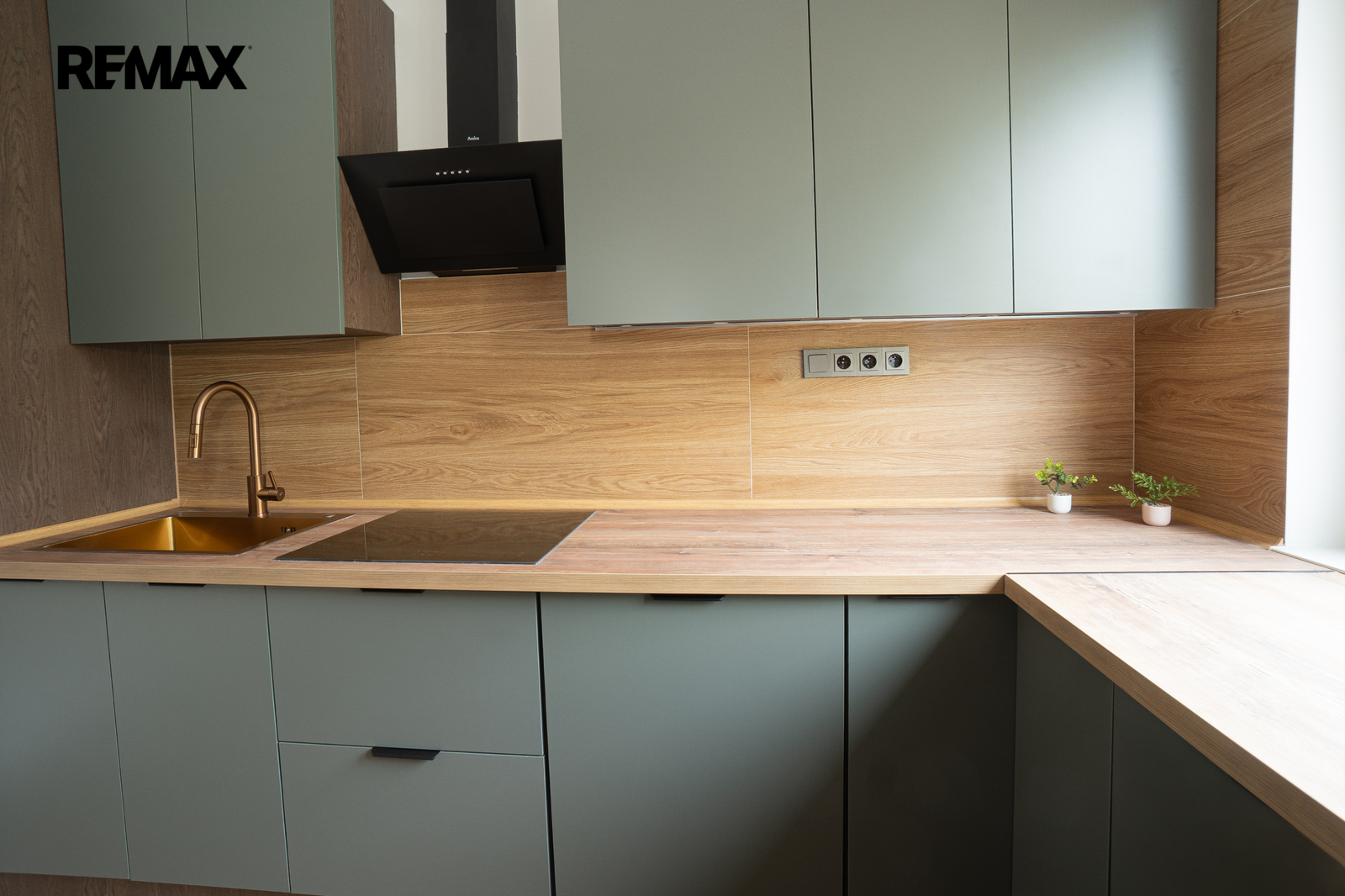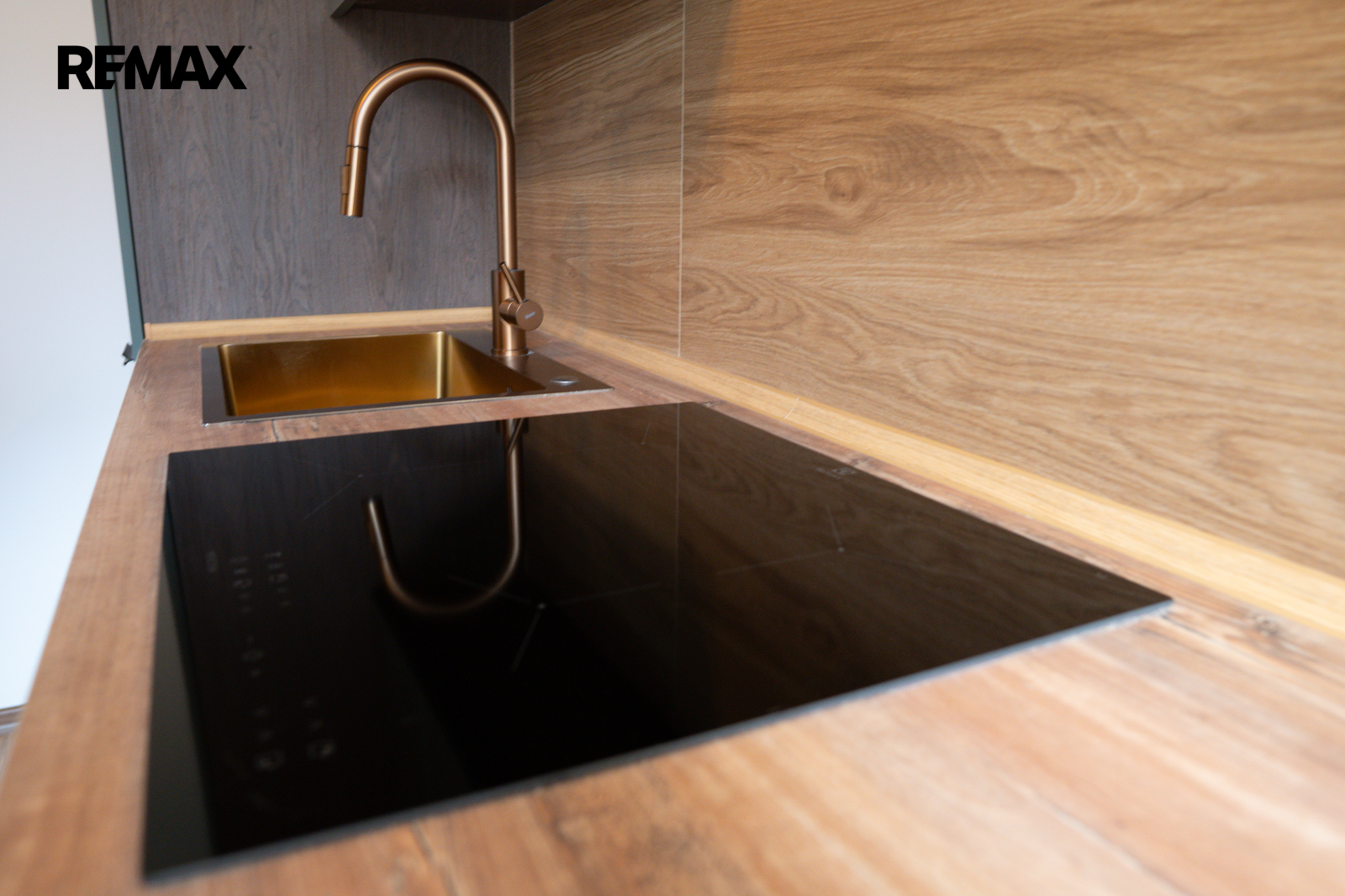 moderní kuchyňská linka na míru včetně vestavěných spotřebičů (lednice, myčka, elektrická trouba, indukční varná deska)