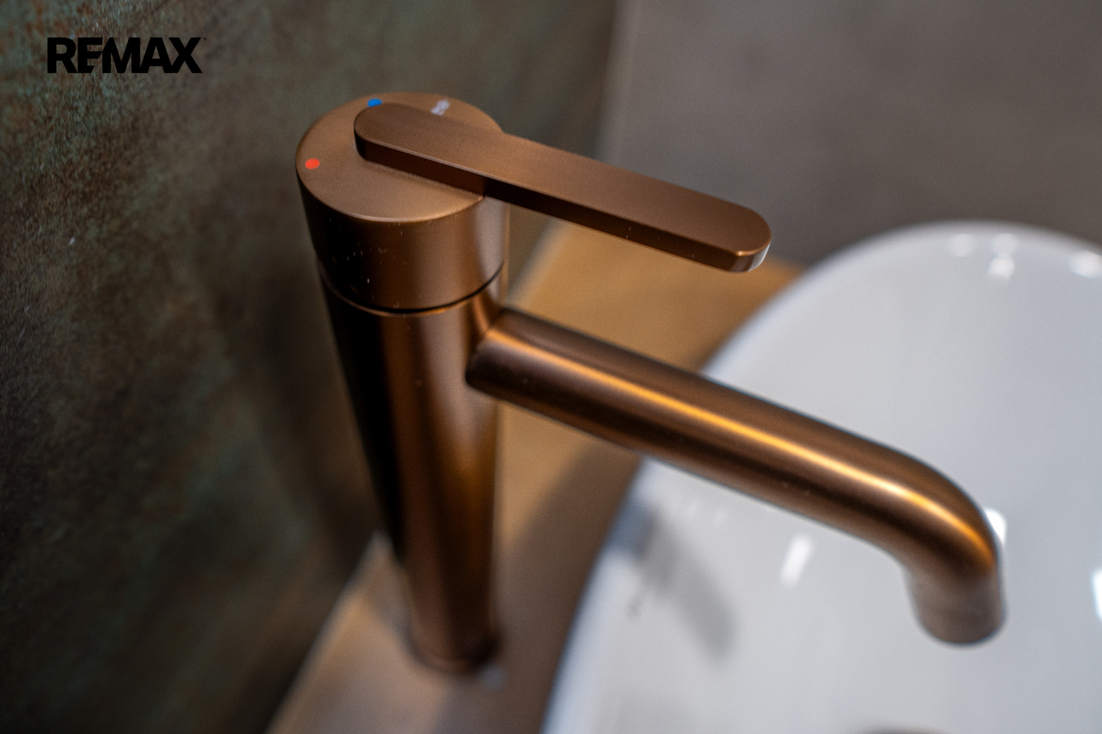 Interiér je vkusně sladěn do elegantních tónů mědi a zelené, které dodávají bytu osobitý charakter a nadčasový vzhled.