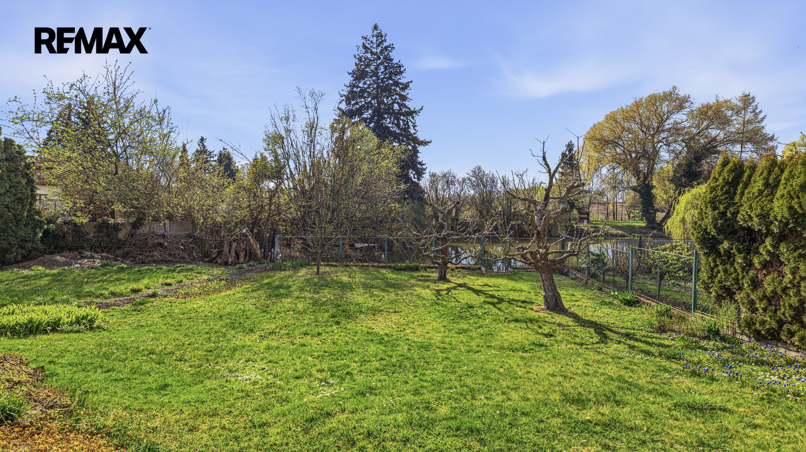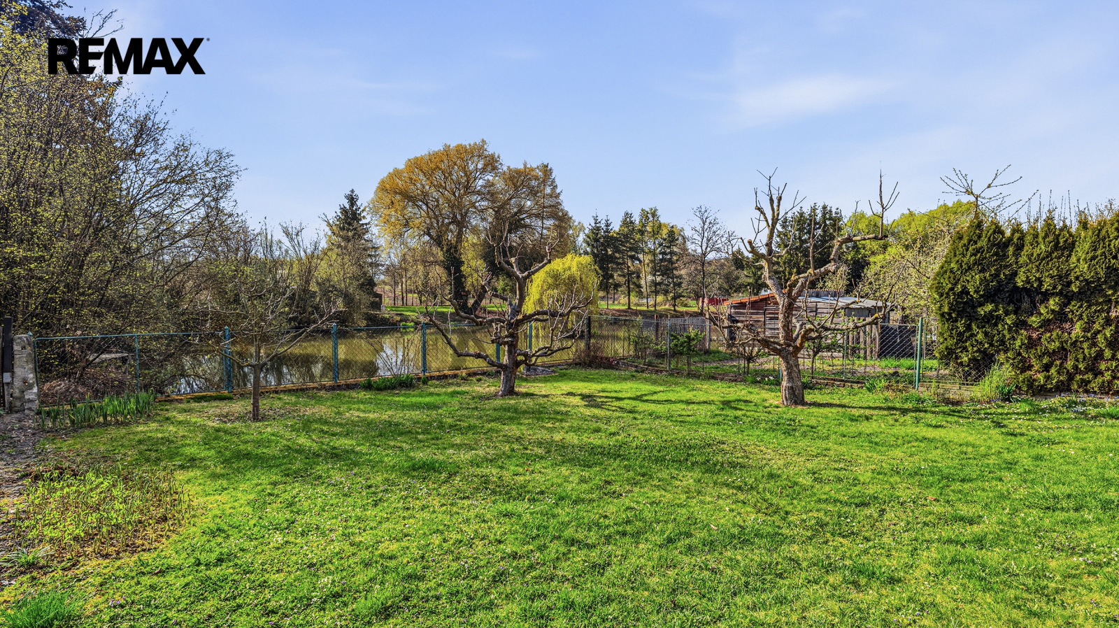 K domu náleží udržovaná zahrada orientovaná k vodní ploše, která vytváří klidné prostředí pro relaxaci. Na zahradě se nacházejí dva zahradní domky.