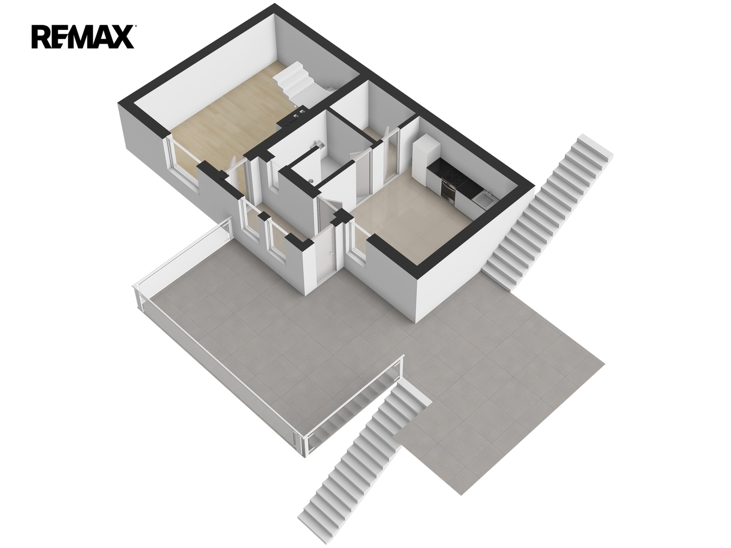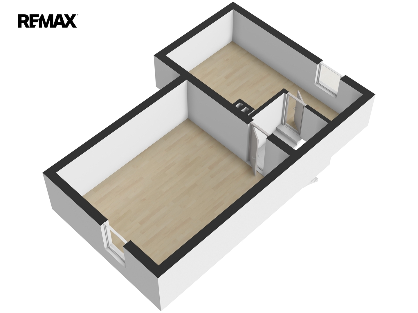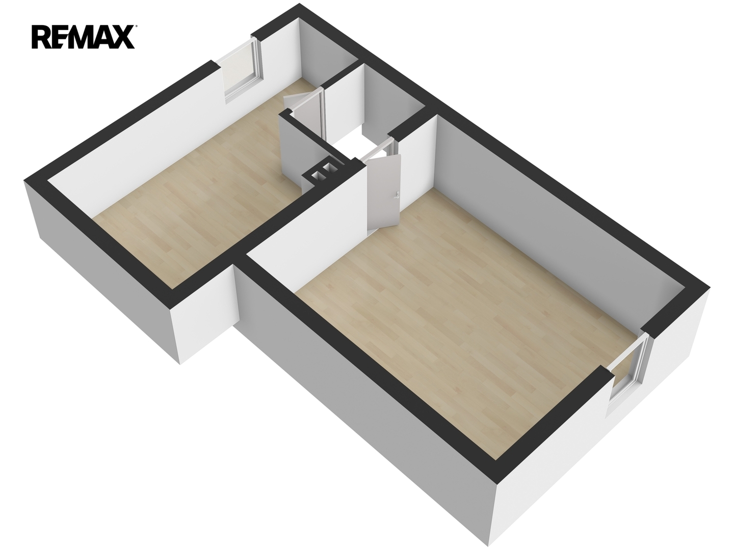 Dispozice domu nabízí v přízemí samostatnou kuchyni se základní výbavou spotřebičů, obývací pokoj, koupelnu se sprchovým koutem a toaletou, technickou místnost a zádveří. V podkroví se nachází hlavní ložnice a samostatný dětský pokoj. Jednotlivá podlaží jsou propojena schodištěm z ocelové konstrukce s dřevěnými stupni.