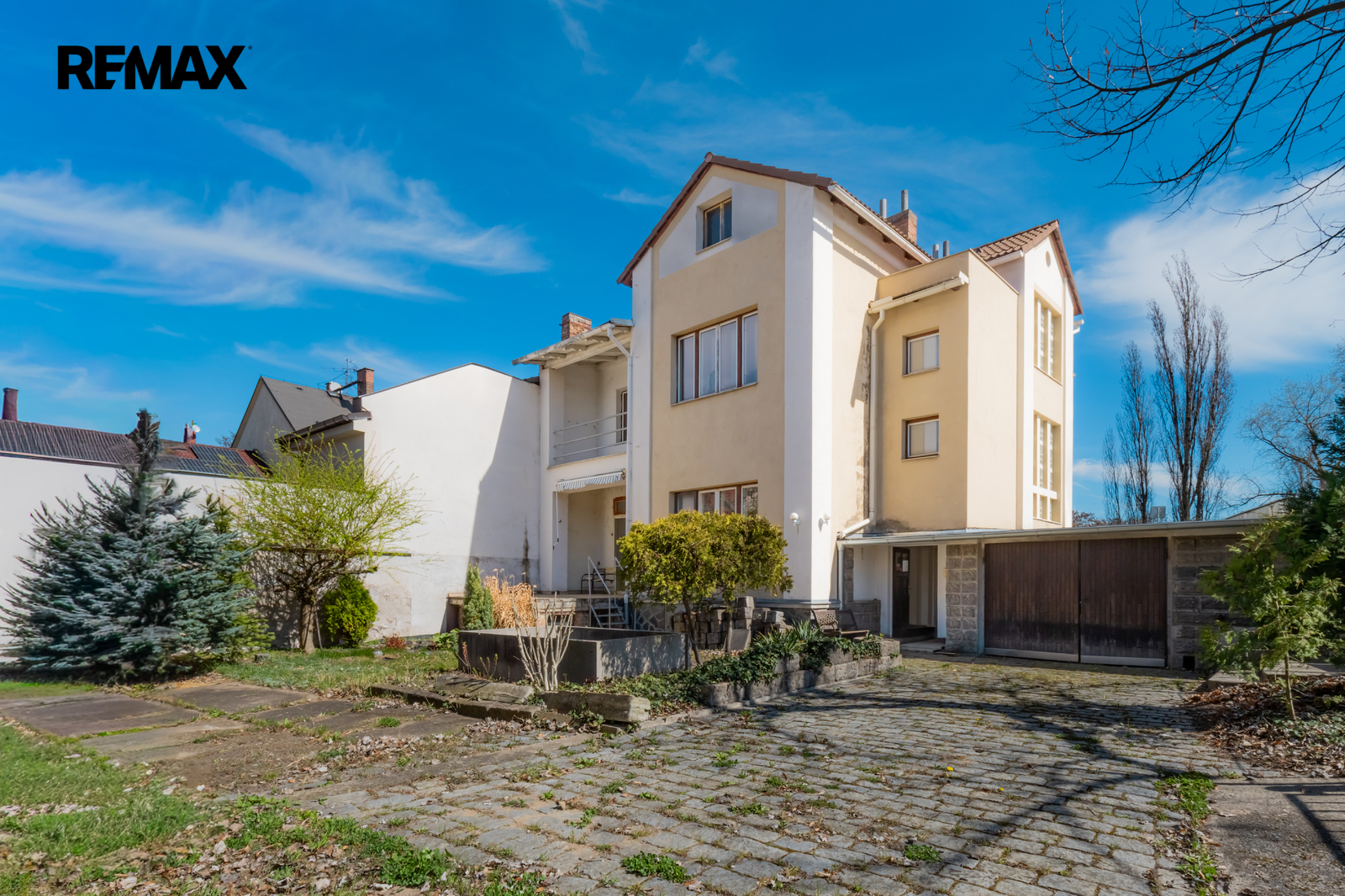 Vila postavená v roce 1905 disponuje dvěma nadzemními podlažími, podkrovím a kompletním podsklepením. Celková užitná plocha činí 341,4 m² a dům je rozdělen na dvě samostatné bytové jednotky. Součástí je prostorná garáž, dvůr a půda. Dům si zachoval původní historické prvky – kované zábradlí schodiště, kazetové podhledy a parkety v rybí kosti. Světlá výška podlaží přibližně 3 200 mm. Střecha rekonstruována 2003, střecha garáže nová 2024, centrální plynový kotel, elektroinstalace trojvodičová, měděná. Vila je neobydlená a připravená k okamžitému převzetí. K dispozici je originální stavební dokumentace z let 1905–1957. Územní plán zóna B2.
