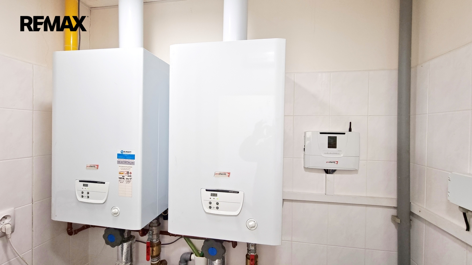 Vytápění je řešeno teplovzdušnými jednotkami, které jsou napojené na dva plynové kotle. Ohřev vody zajišťuje elektrický bojler.